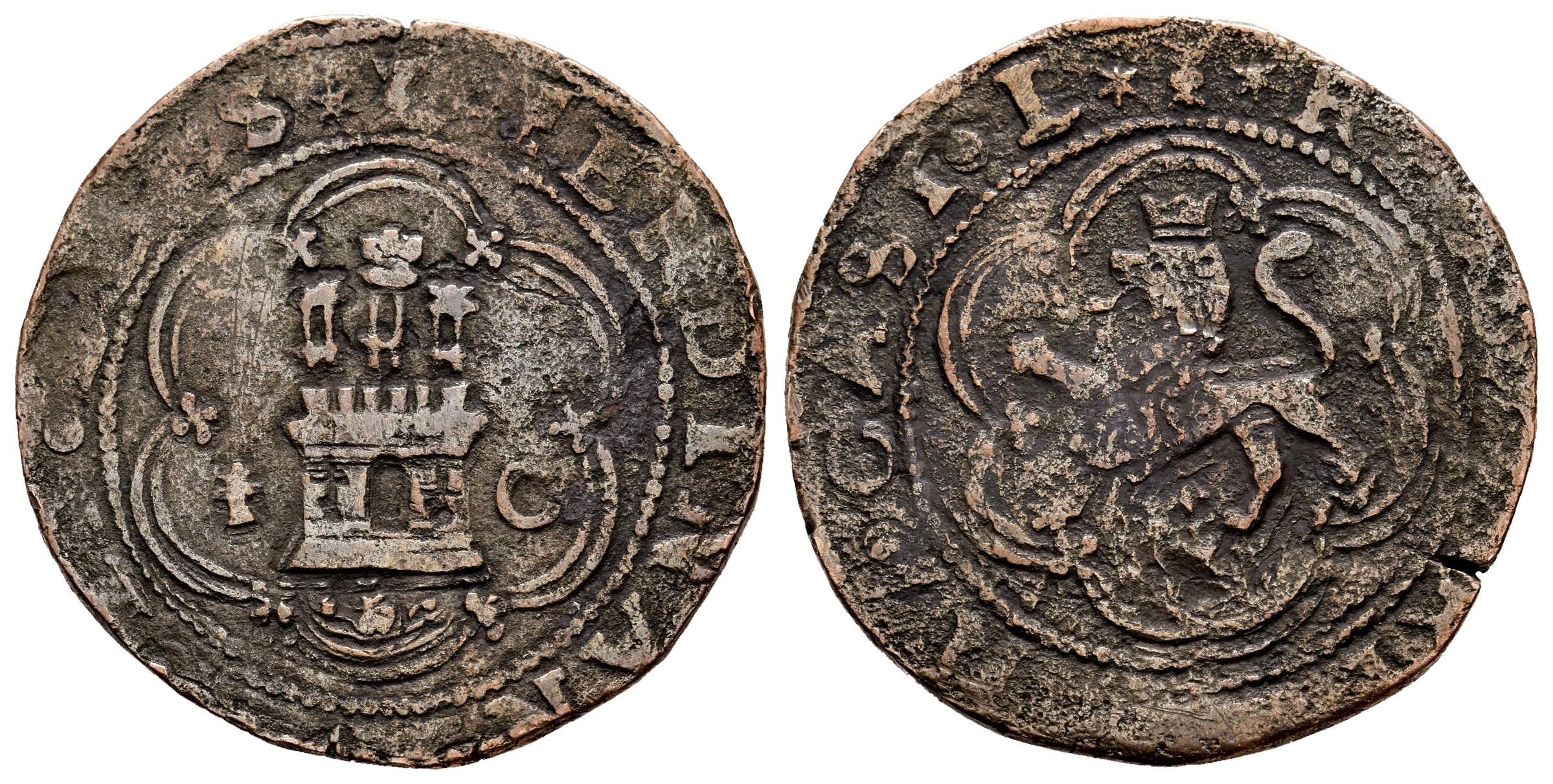 Fernando e Isabel (1474-1504). 4 maravedís. Cuenca. (Cal-135). Ae. Castillo entre armiño y C. MBC-/BC+. Est...18,00.