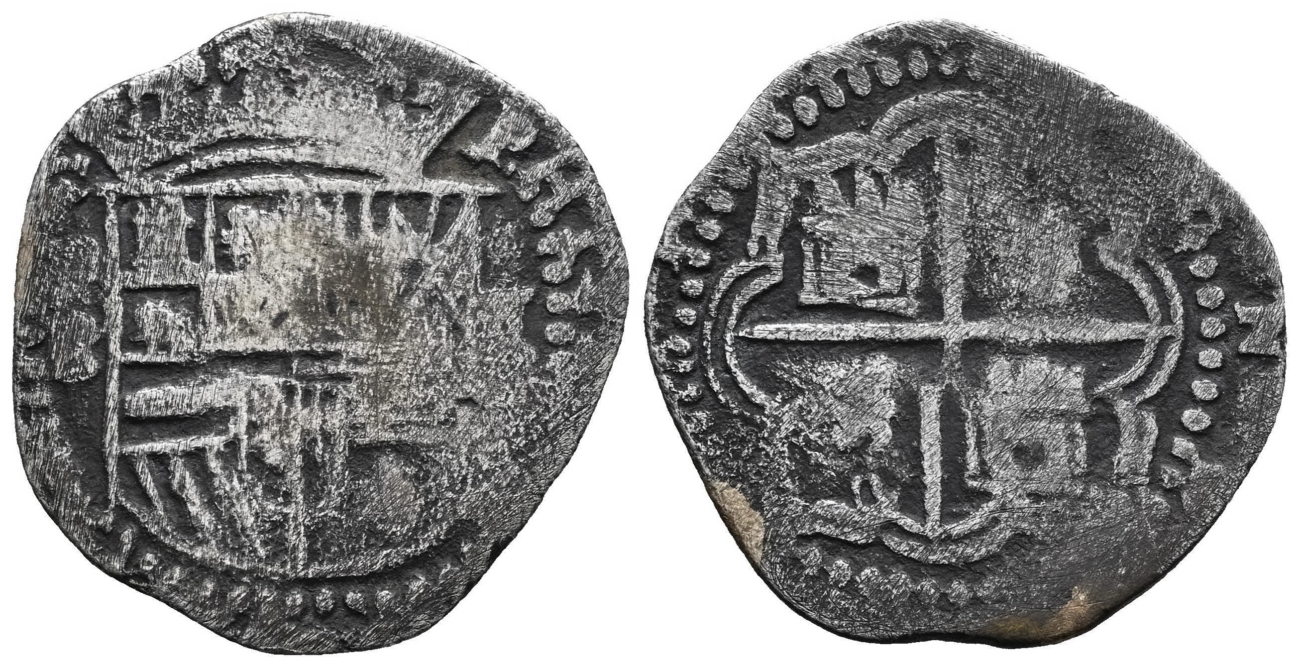 Felipe II (1556-1598). 1 real. ND (1578-1595). Potosí. B. (Cal-242). Ag. 2,64 g. Recortada. BC. Est...40,00.