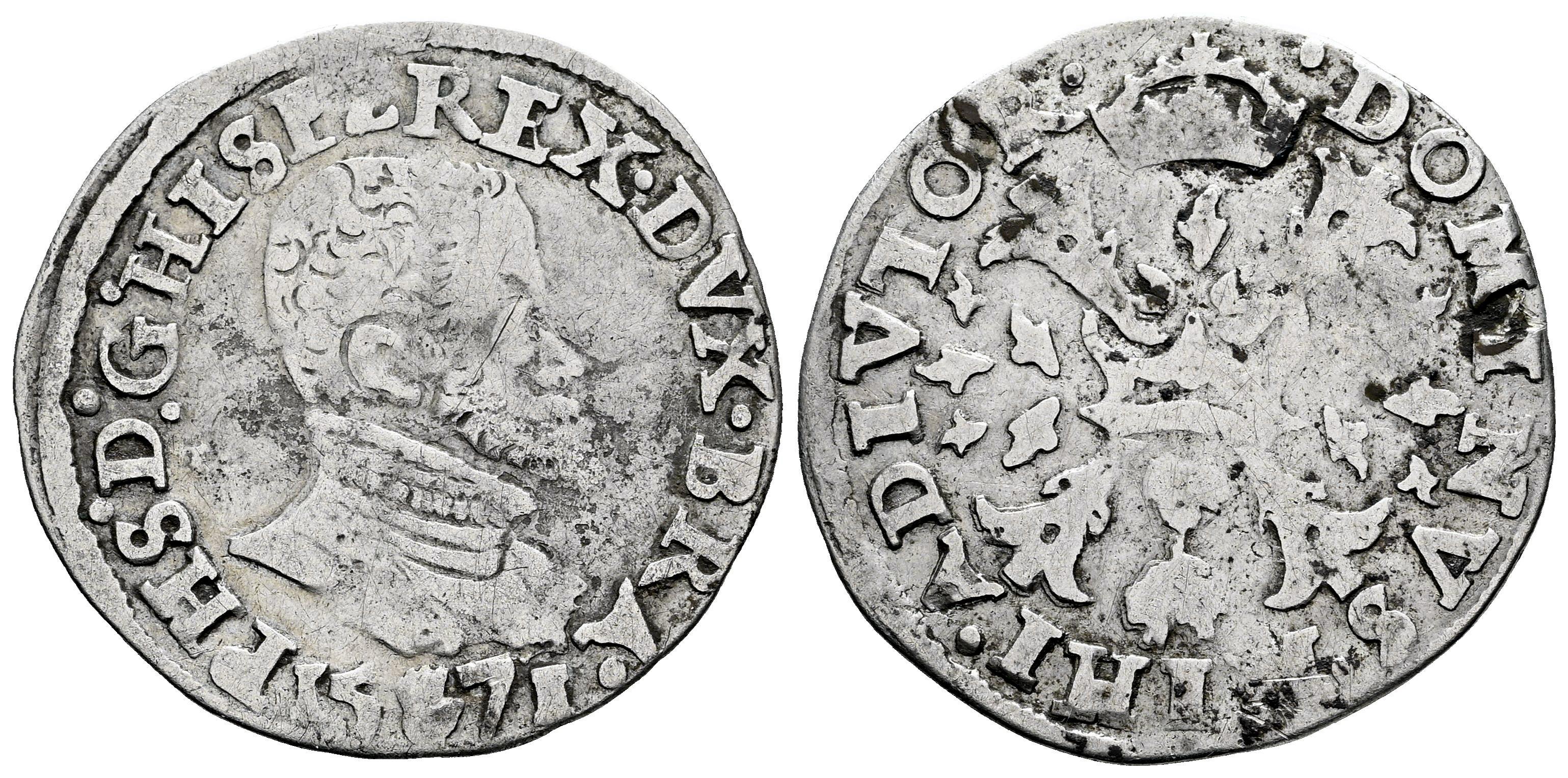 Felipe II (1556-1598). 1/10 de escudo Felipe. 1571. Amberes. (Tauler-873). (Vti-821). (Vanhoudt-308.AN). Ag. 3,13 g. MBC-. Est...65,00.