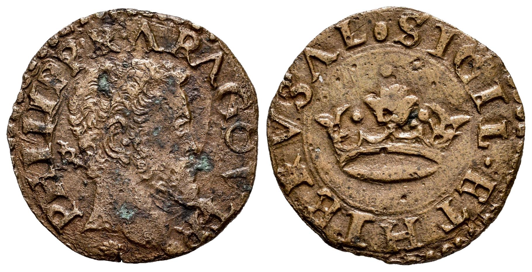Felipe II (1556-1598). 2 caballos. ND. Nápoles. IBR. (Vti-235). Ae. 2,78 g. Leves oxidaciones. MBC/MBC+. Est...35,00.