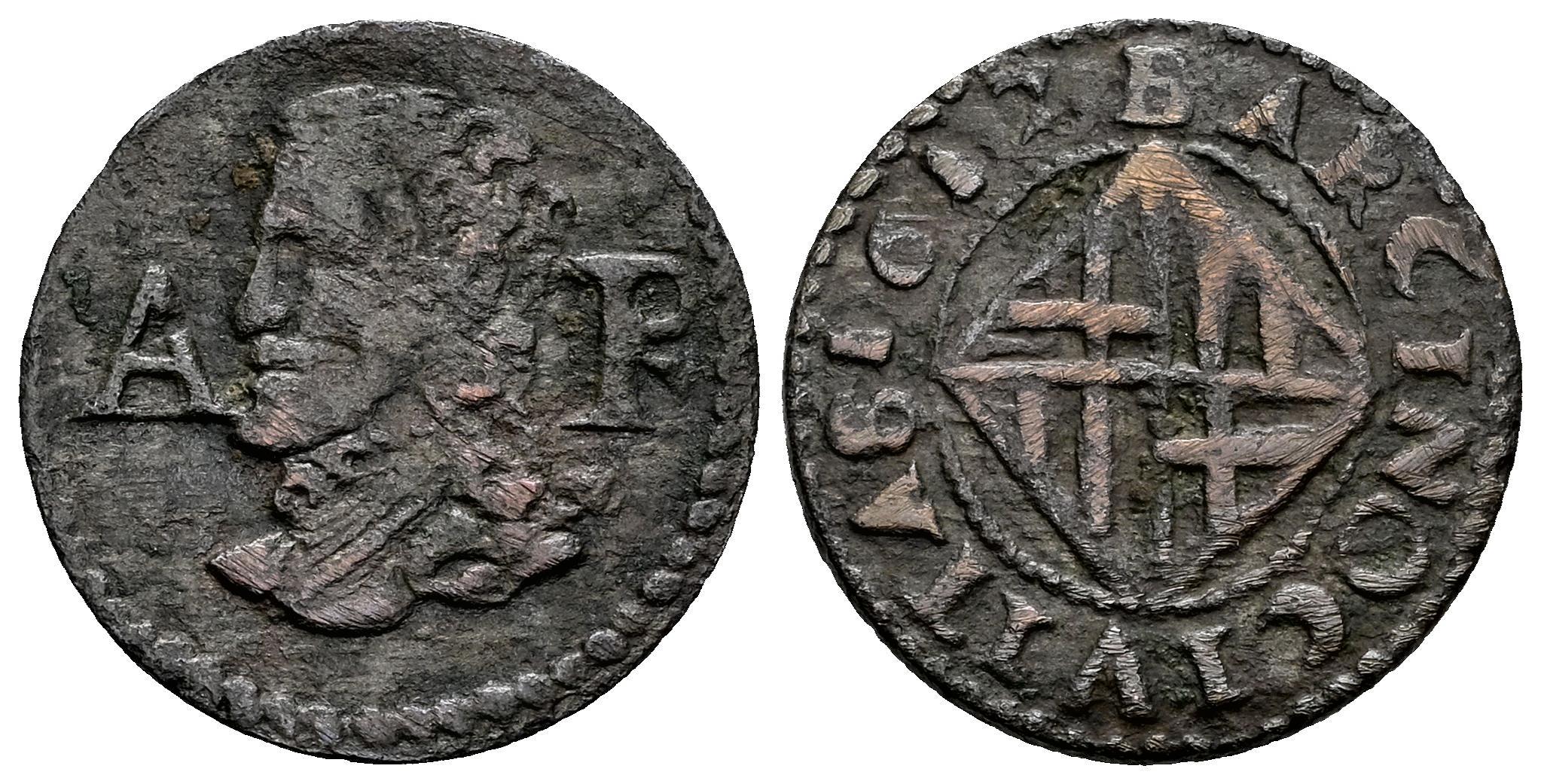 Felipe III (1598-1621). 1 ardite. 1617. Barcelona. (Cal-28). Ae. 1,43 g. Ex Áureo & Calicó 374 (19/10/2021), lote 2333; Ex Áureo & Calicó 237, Colección Crusafont (27/10/2011), lote 1144. MBC-. Est...30,00.
