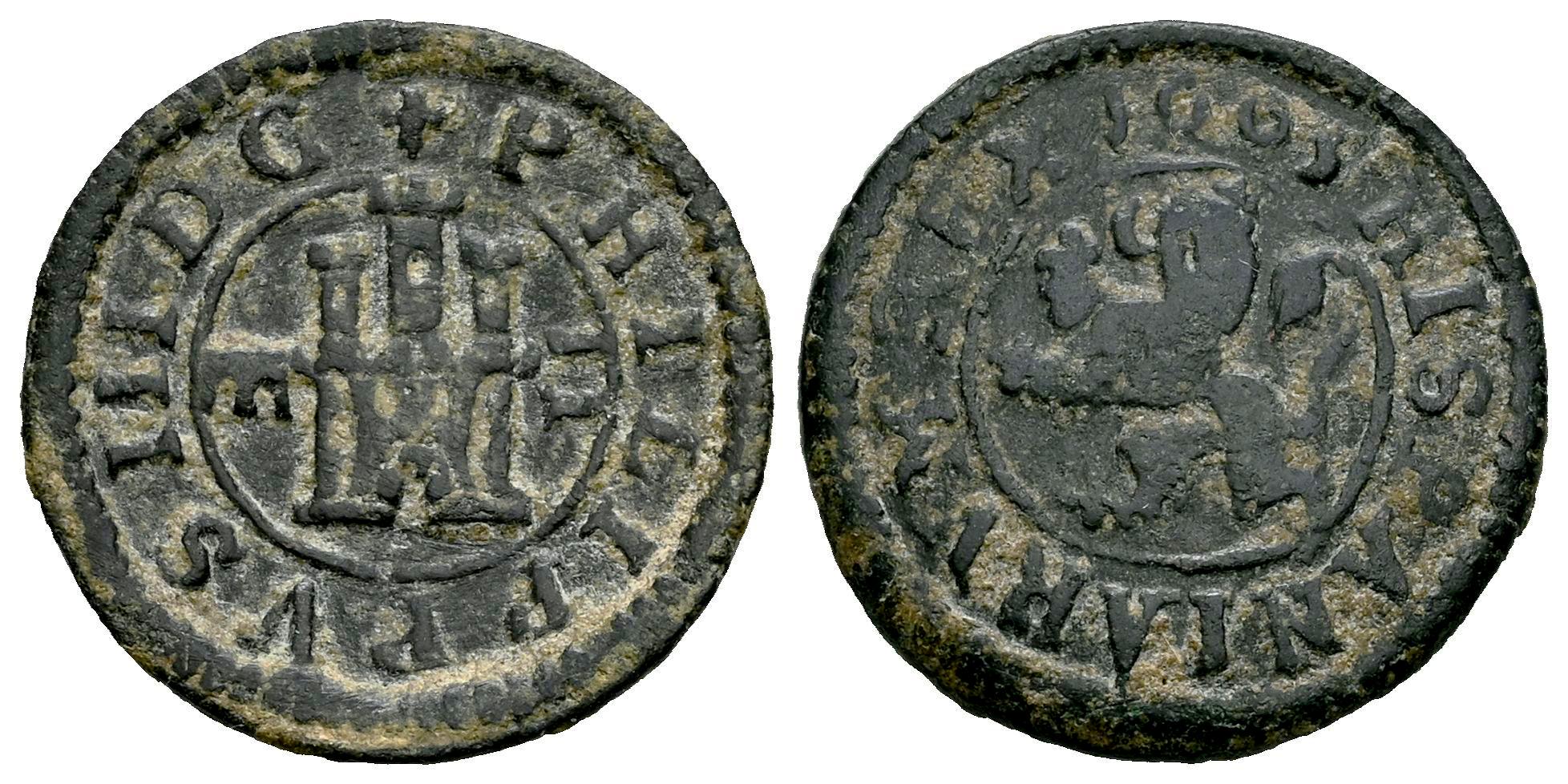 Felipe III (1598-1621). 2 maravedís. 1605. Segovia. (Cal-187). Ae. 1,43 g. Acueducto horizontal. MBC. Est...25,00.