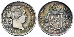 Isabel II (1833-1868). 10 centavos. 1868. Manila. (Cal-656). Ag. 2,61 g. Golpecitos en el canto. Suave pátina. MBC+. Est...60,00.