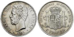 Centenario de la Peseta (1868-1931). Amadeo I (1871-1873). 5 pesetas. 1871*18-71. Madrid. SDM. (Cal-1). Ag. 24,84 g. Limpiada. MBC-. Est...40,00.