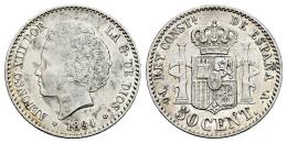 Centenario de la Peseta (1868-1931). Alfonso XIII (1886-1931). 50 céntimos. 1894*9-4. Madrid. PGV. (Cal-43). Ag. 2,50 g. MBC+. Est...30,00.
