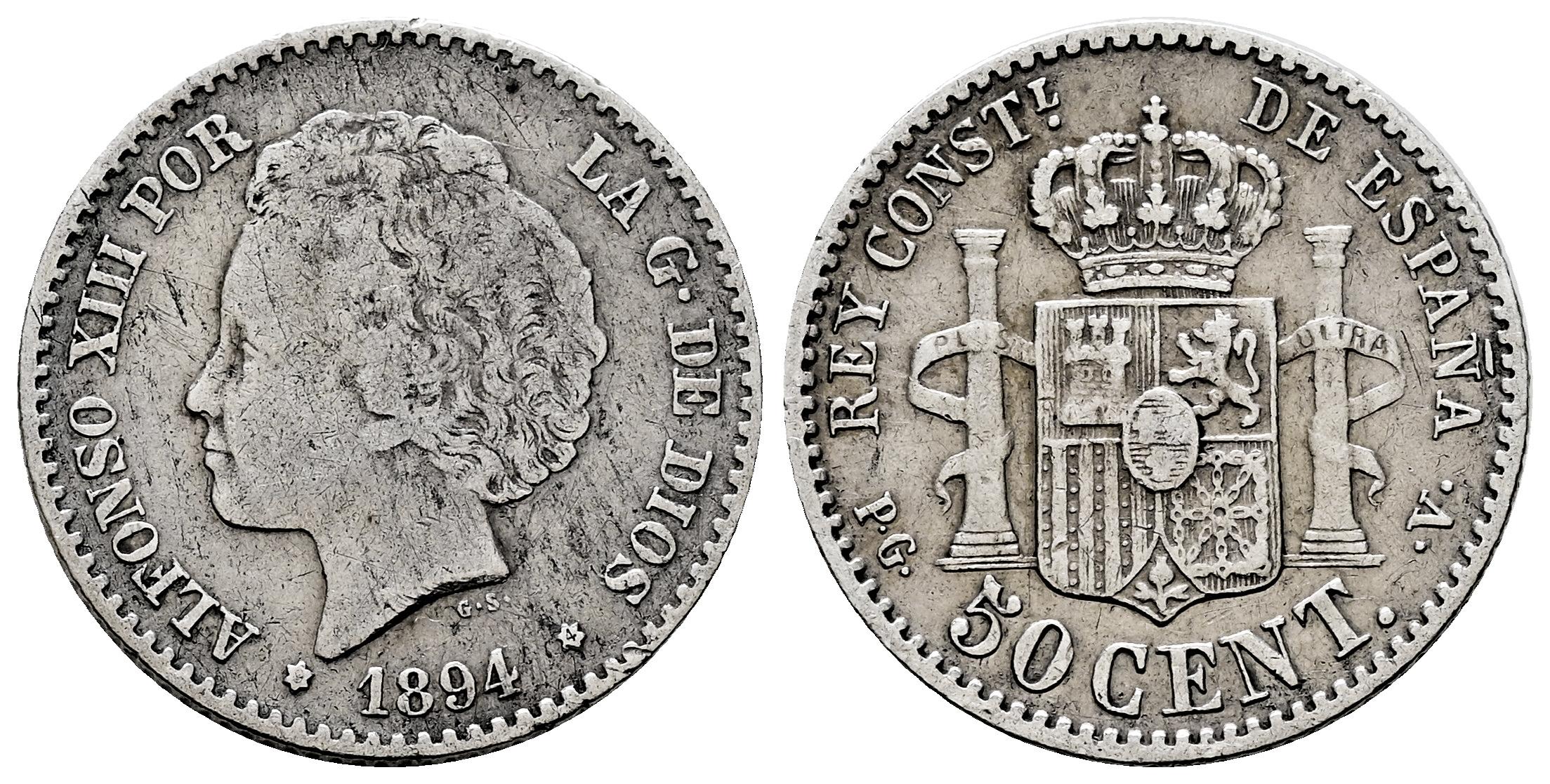 Centenario de la Peseta (1868-1931). Alfonso XIII (1886-1931). 50 céntimos. 1894*_-4. Madrid. PGV. (Cal-43). Ag. 2,44 g. MBC-/MBC. Est...15,00.