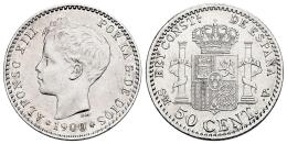Centenario de la Peseta (1868-1931). Alfonso XIII (1886-1931). 50 céntimos. 1900 *0-0. Madrid. SMV. (Cal-45). Ag. 2,51 g. Ex Soler & Llach 1130 (26/04/2023), lote 2894. EBC-/MBC+. Est...40,00.