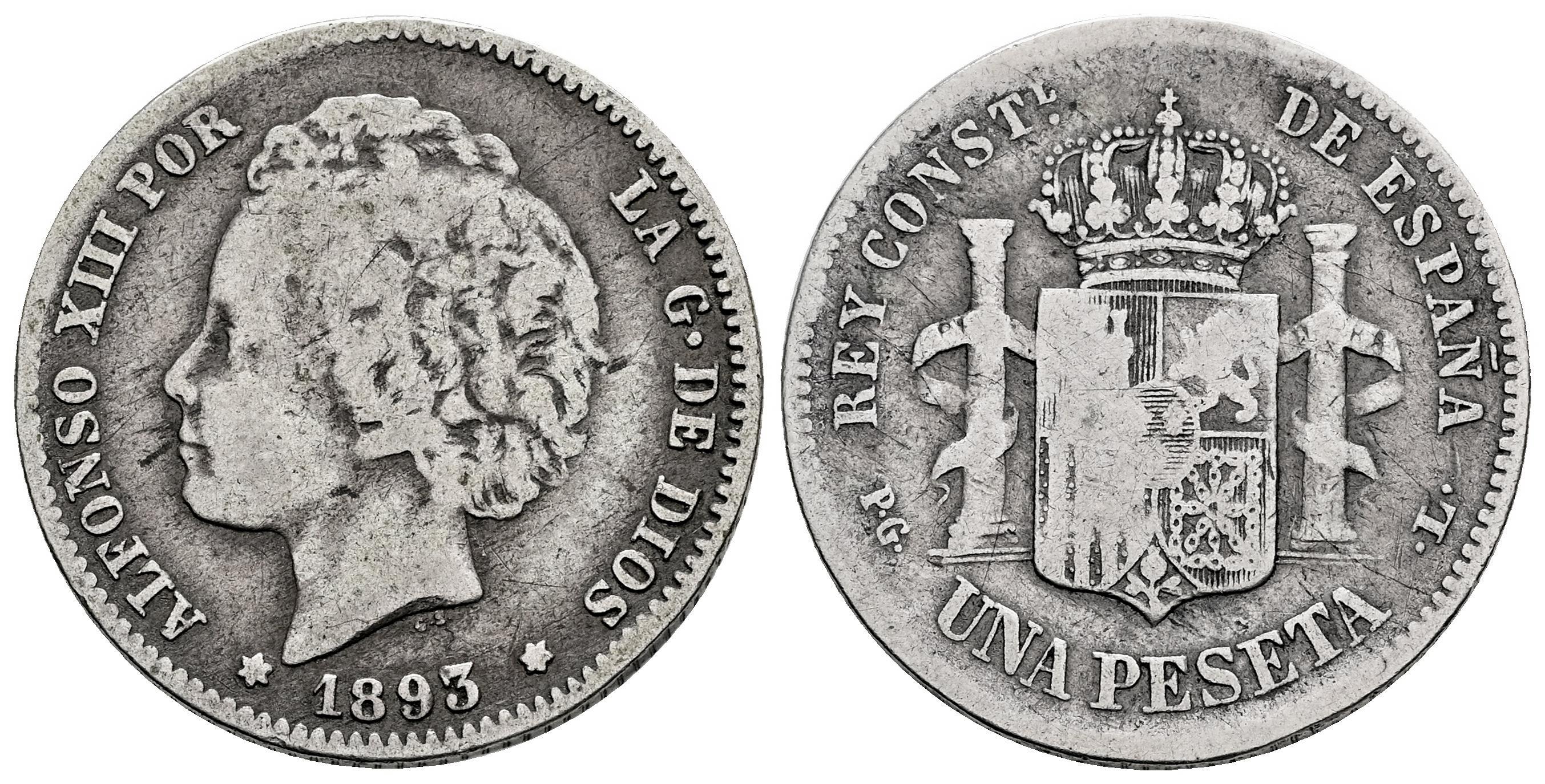 Centenario de la Peseta (1868-1931). Alfonso XIII (1886-1931). 1 peseta. 1893*_-_. Madrid. PGL. (Cal-54). Ag. 4,81 g. BC. Est...20,00.