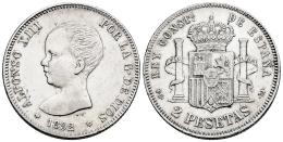 Centenario de la Peseta (1868-1931). Alfonso XIII (1886-1931). 2 pesetas. 1892*18-92. Madrid. PGM. (Cal-85). Ag. 10,02 g. Primera estrella algo tenue. Leves marquitas. Limpiada. MBC. Est...50,00.