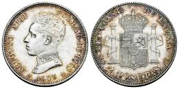 Centenario de la Peseta (1868-1931). Alfonso XIII (1886-1931). 2 pesetas. 1905*19-05. Madrid. SMV. (Cal-88). Ag. 10,17 g. Mínimas rayitas. Restos de brillo original. EBC+. Est...35,00.
