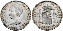 Centenario de la Peseta (1868-1931). Alfonso XIII (1886-1931). 5 pesetas. 1891*18-91. Madrid. PGM. (Cal-98). Ag. 25,00 g. Limpiada. MBC+. Est...50,00.