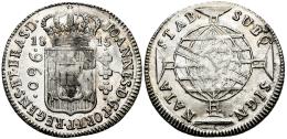 Brasil. D. Joao, Príncipe Regente (1799-1816). 960 reis. 1815. Bahía. B?. (Km-307.1?). Ag. 26,85 g. Acuñada sobre una moneda de 8 reales. Restos de brillo original. EBC-. Est...150,00.
