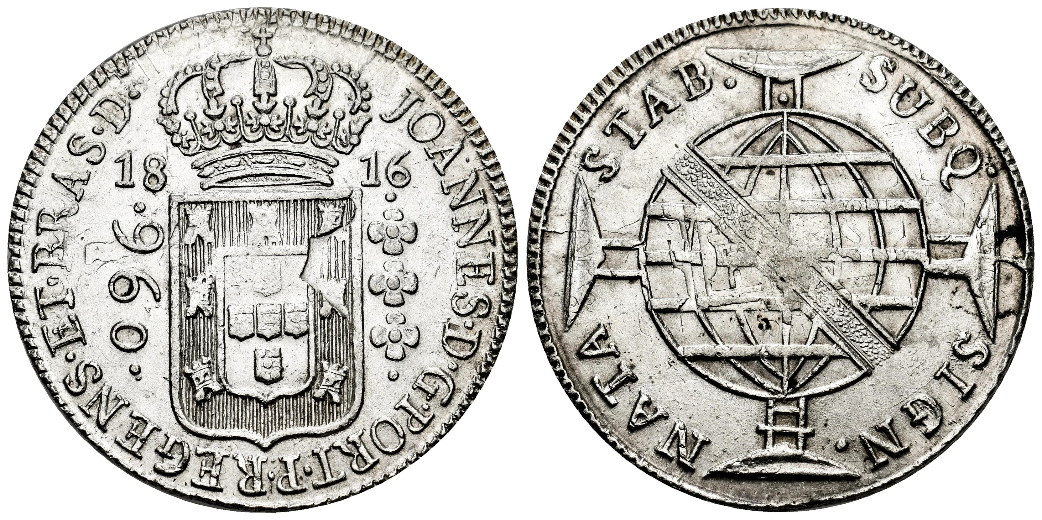 Brasil. D. Joao, Príncipe Regente (1799-1816). 960 reis. 1816. Bahía. B?. (Km-307.1). Ag. 26,93 g. Acuñada sobre una moneda de 8 reales. Restos de brillo original. EBC. Est...150,00.