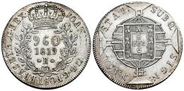 Brasil. D. Joao VI (1816-1826). 960 reis. 1819. Rio de Janeiro. R. (Km-326.1). Ag. 26,86 g. Acuñada sobre una moneda de 8 reales. Restos de brillo original. EBC-. Est...150,00.