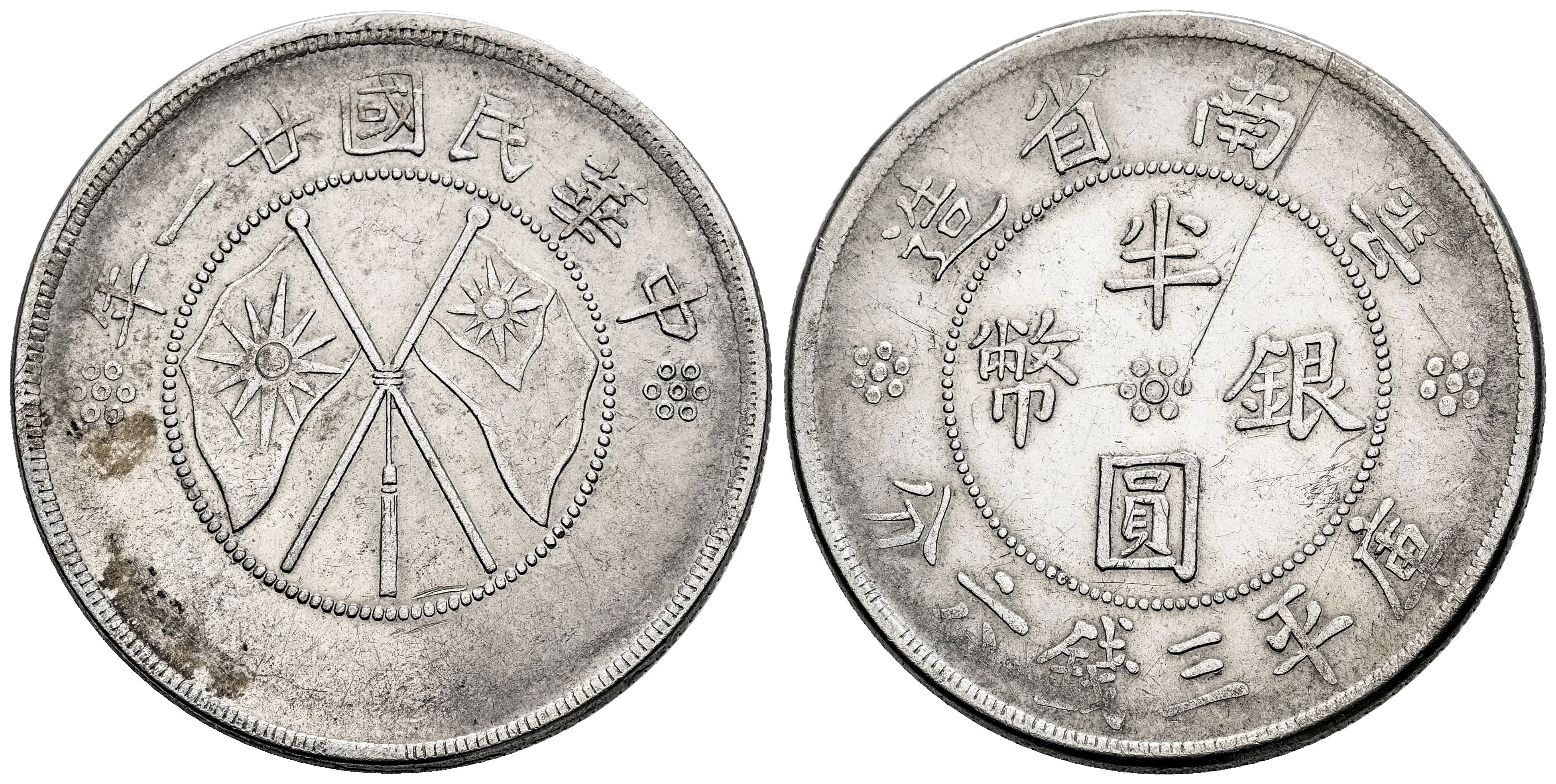 China. Yunnan. 50 cents. 1932. (Km-Y492). Ag. 13,13 g. Rayas. Limpiada. EBC-. Est...60,00.