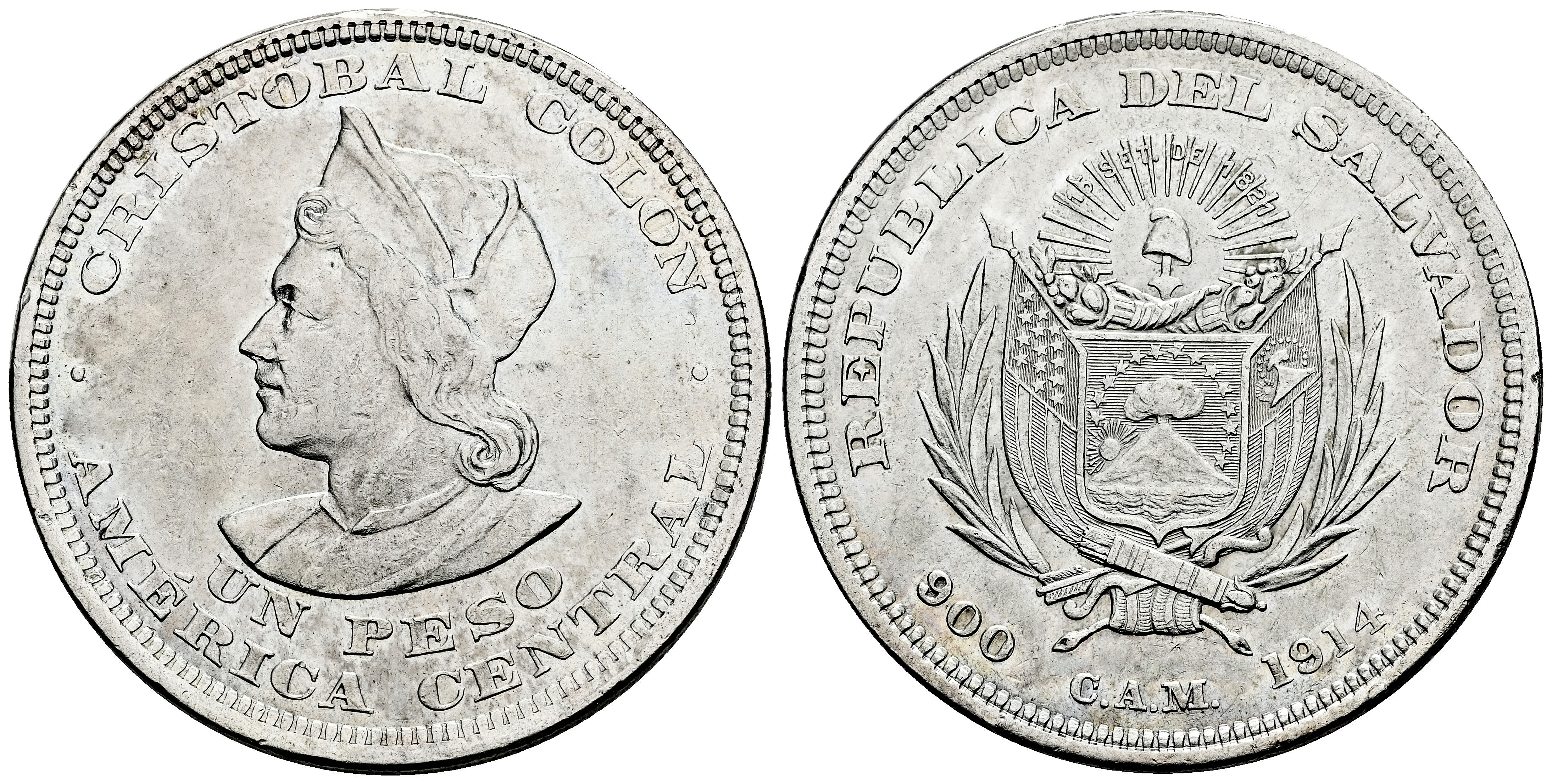 El Salvador. 1 peso. 1914. CAM. (Km-115.2). Ag. 24,84 g. Golpecito en el canto. EBC-. Est...70,00.