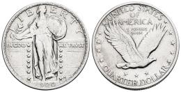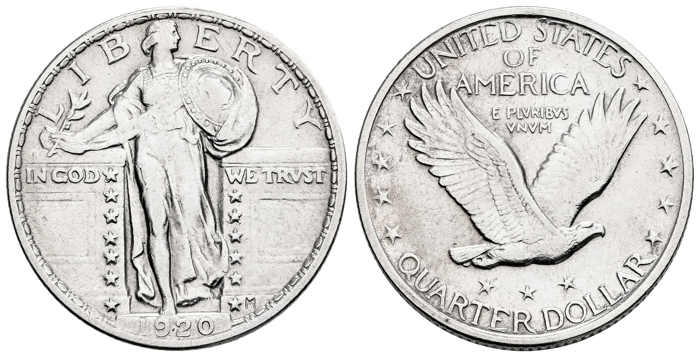 Estados Unidos. Standing Liberty Quarters. 1/4 dollar. 1920. Philadelphia. (Km-145). Ag. 6,20 g. Limpiada. Ex Tauler & Fau 63 (14/07/2020), lote 3546. MBC. Est...45,00.