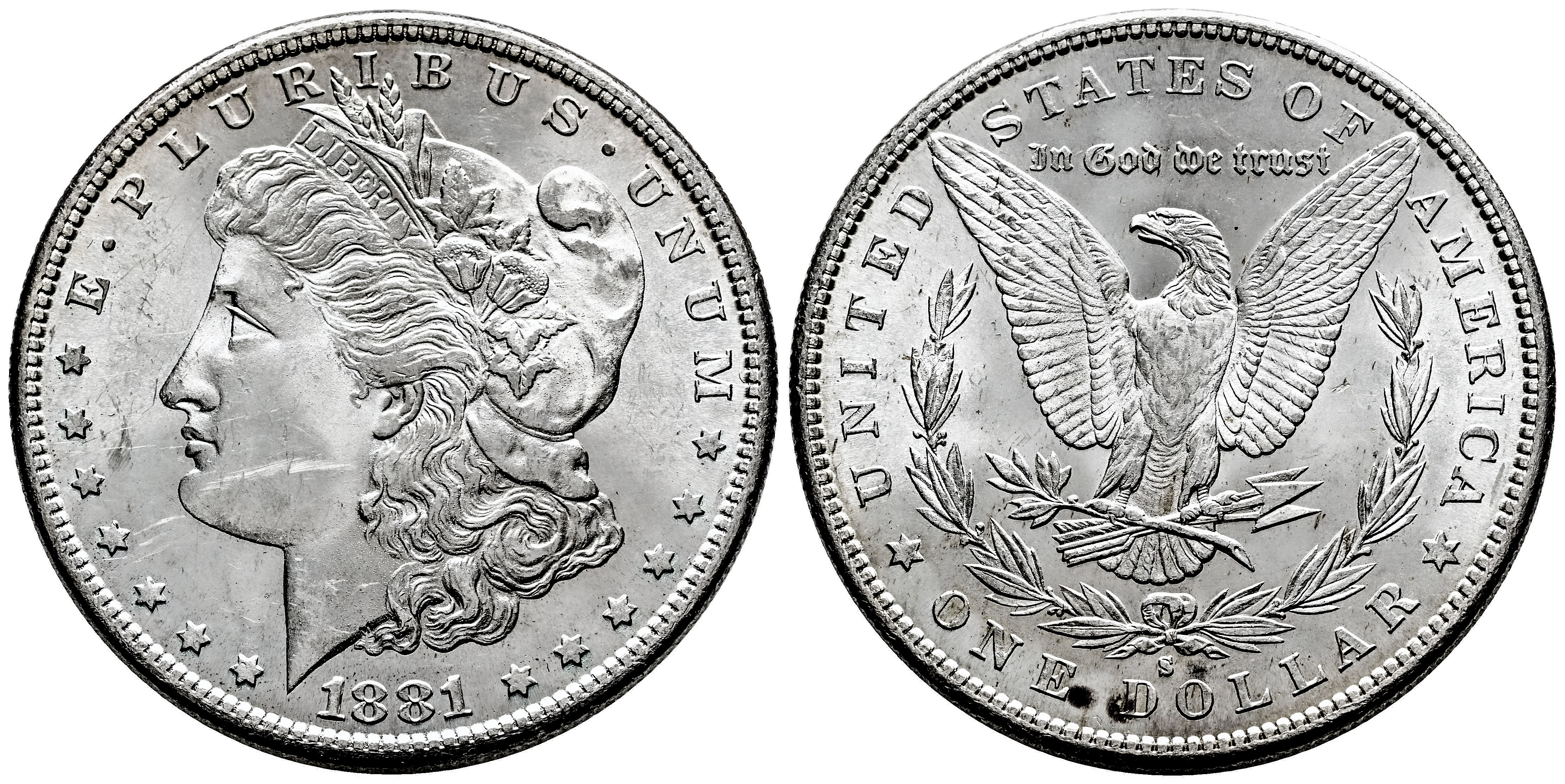 Estados Unidos. Morgan Dollars. 1 dollar. 1881. San Francisco. S. (Km-110). Ag. 26,71 g. Pleno brillo original. SC-. Est...100,00.