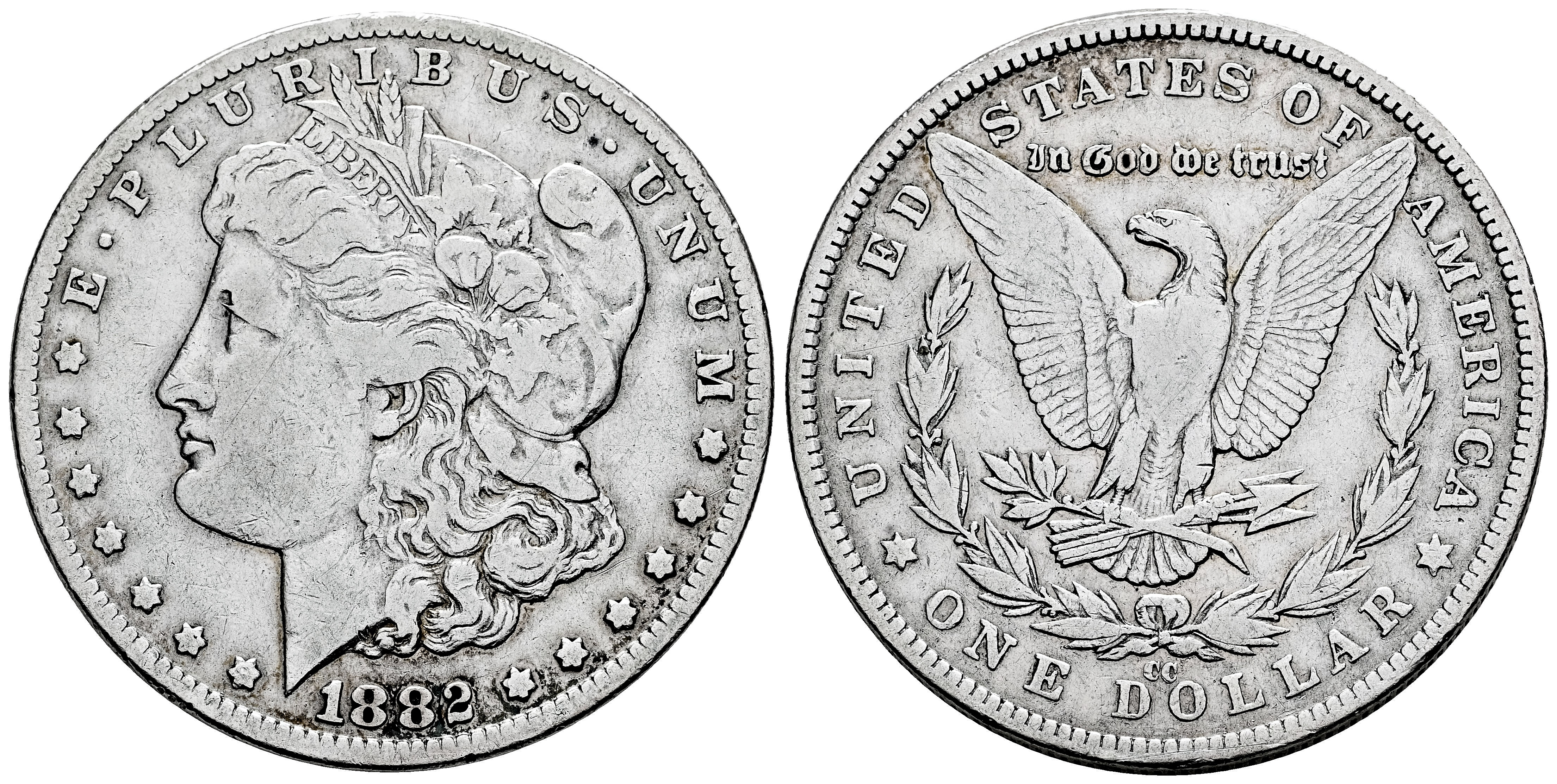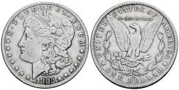 Estados Unidos. Morgan Dollars. 1 dollar. 1882. Carson City. CC. (Km-110). Ag. 26,34 g. Limpiada. Escasa. MBC-. Est...100,00.