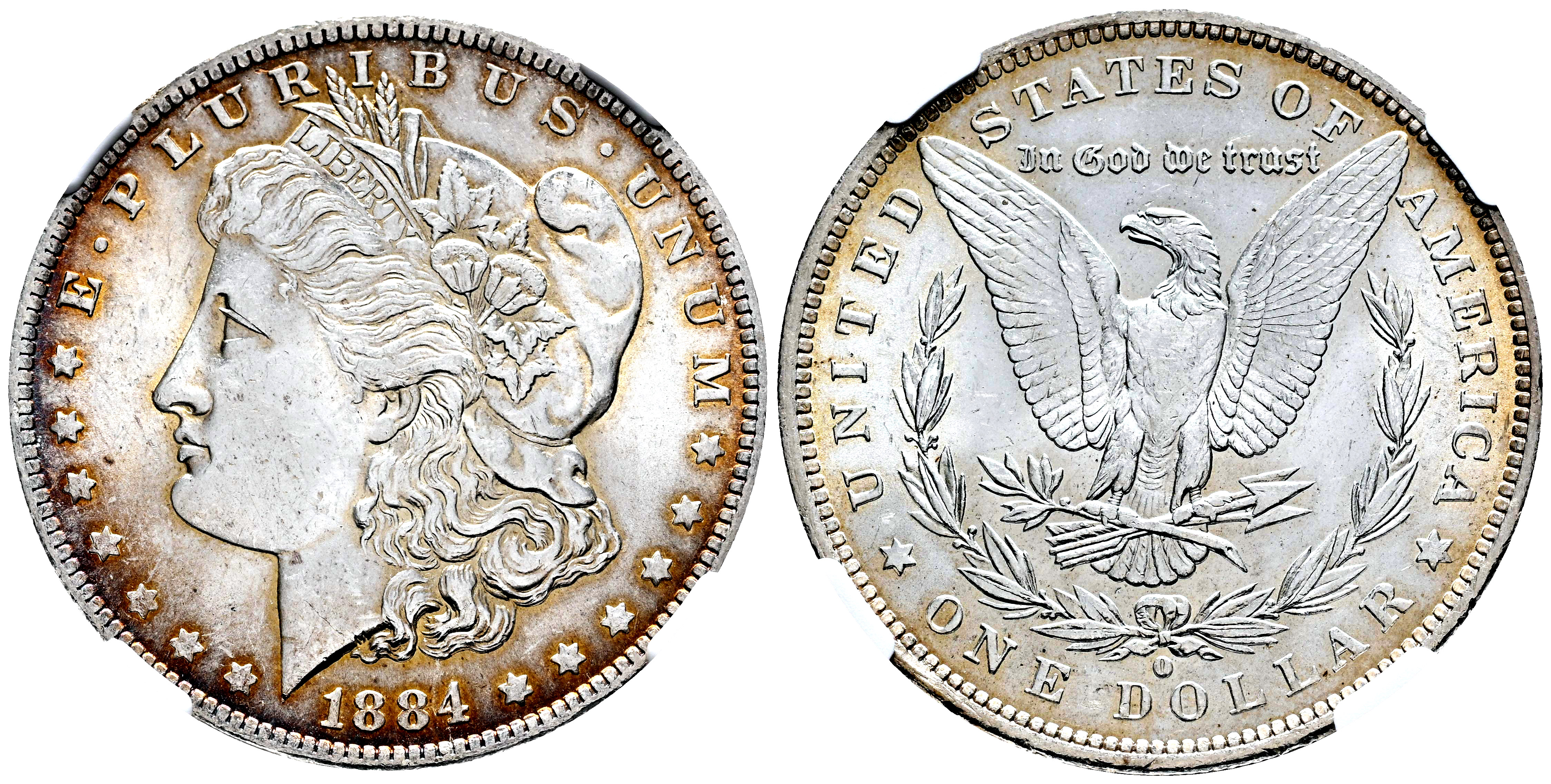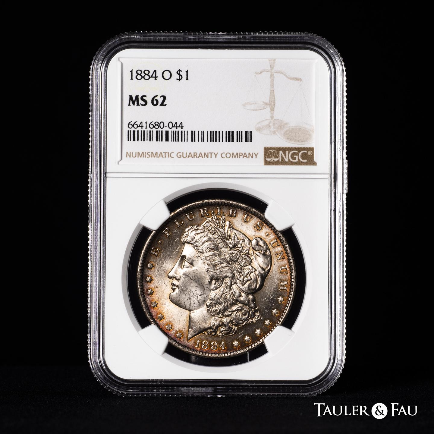 Estados Unidos. Morgan Dollars. 1 dollar. 1884. Nueva Orleans. O. (Km-110). Ag. Pleno brillo original con bonito tono en anverso. Encapsulada por NGC como MS 62. NGC-MS. Est...150,00.
