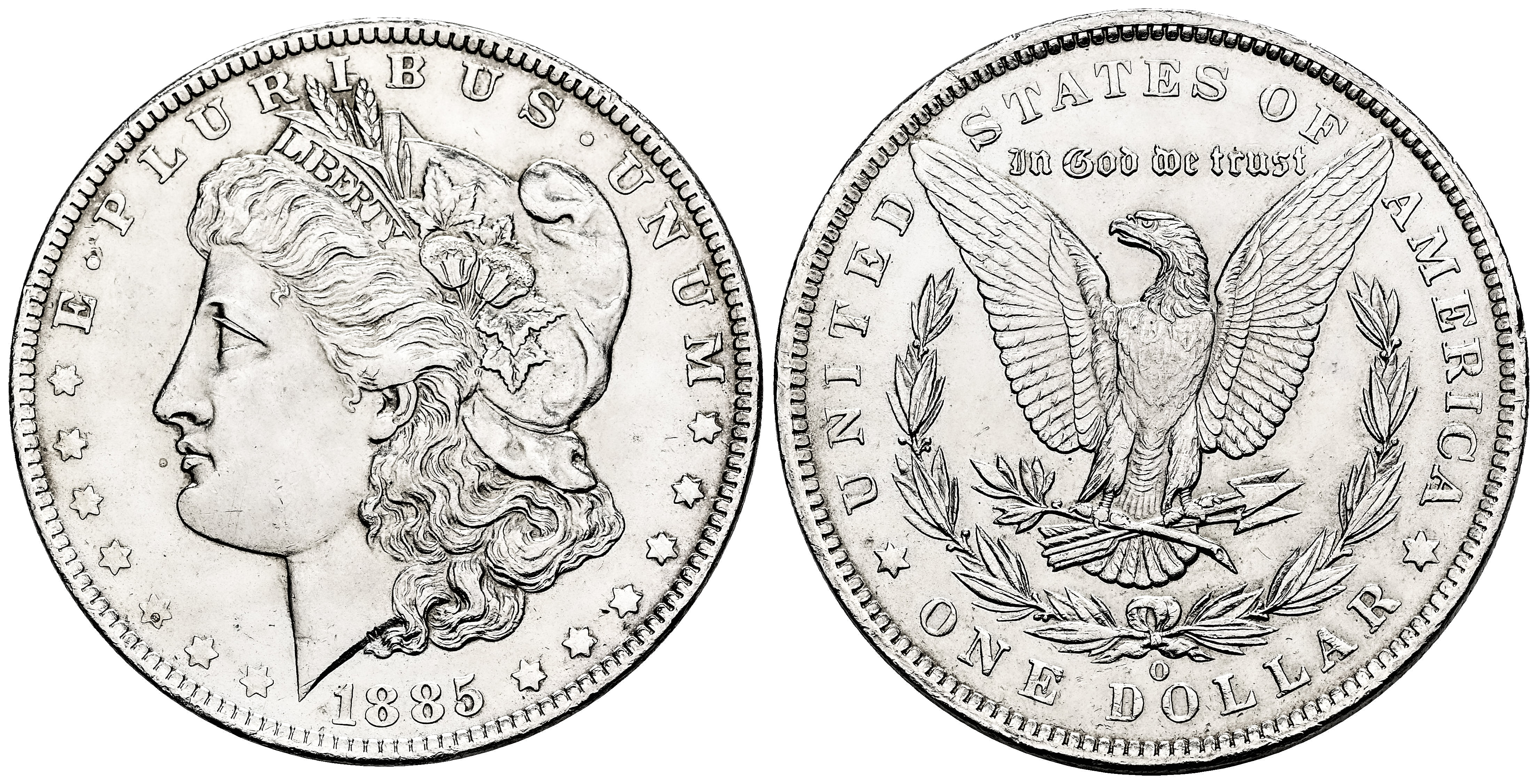 Estados Unidos. Morgan Dollars. 1 dollar. 1885. Nueva Orleans. O. (Km-110). Ag. 26,75 g. Restos de brillo original. Ligeramente limpiada. Ex Áureo & Calicó 256 (15/10/2020), lote 3344. EBC+. Est...80,00.