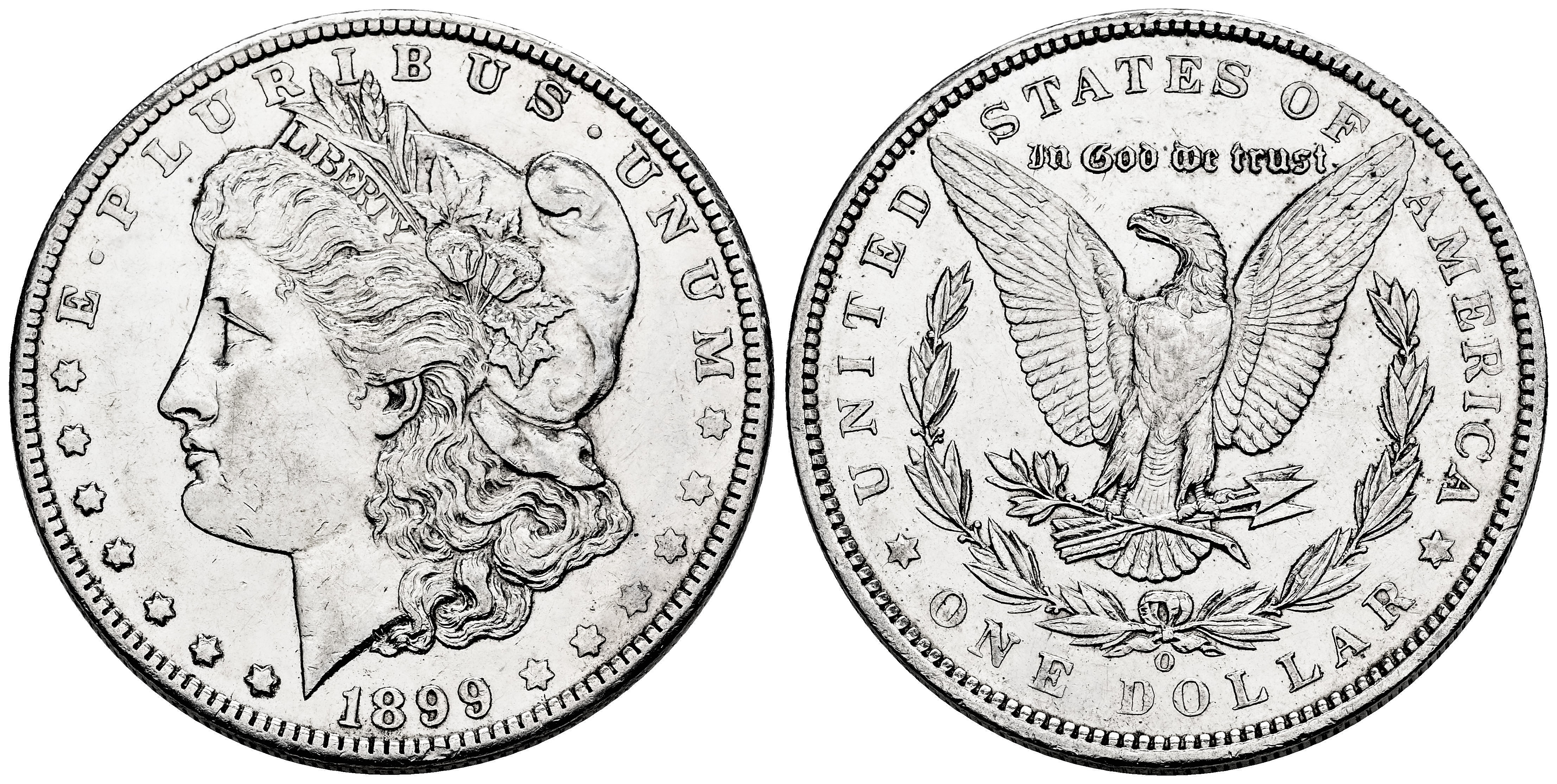 Estados Unidos. Morgan Dollars. 1 dollar. 1899. Nueva Orleans. O. (Km-110). Ag. 26,75 g. Limpiada. Ex Áureo & Calicó 256 (15/10/2020), lote 3351. MBC+. Est...60,00.