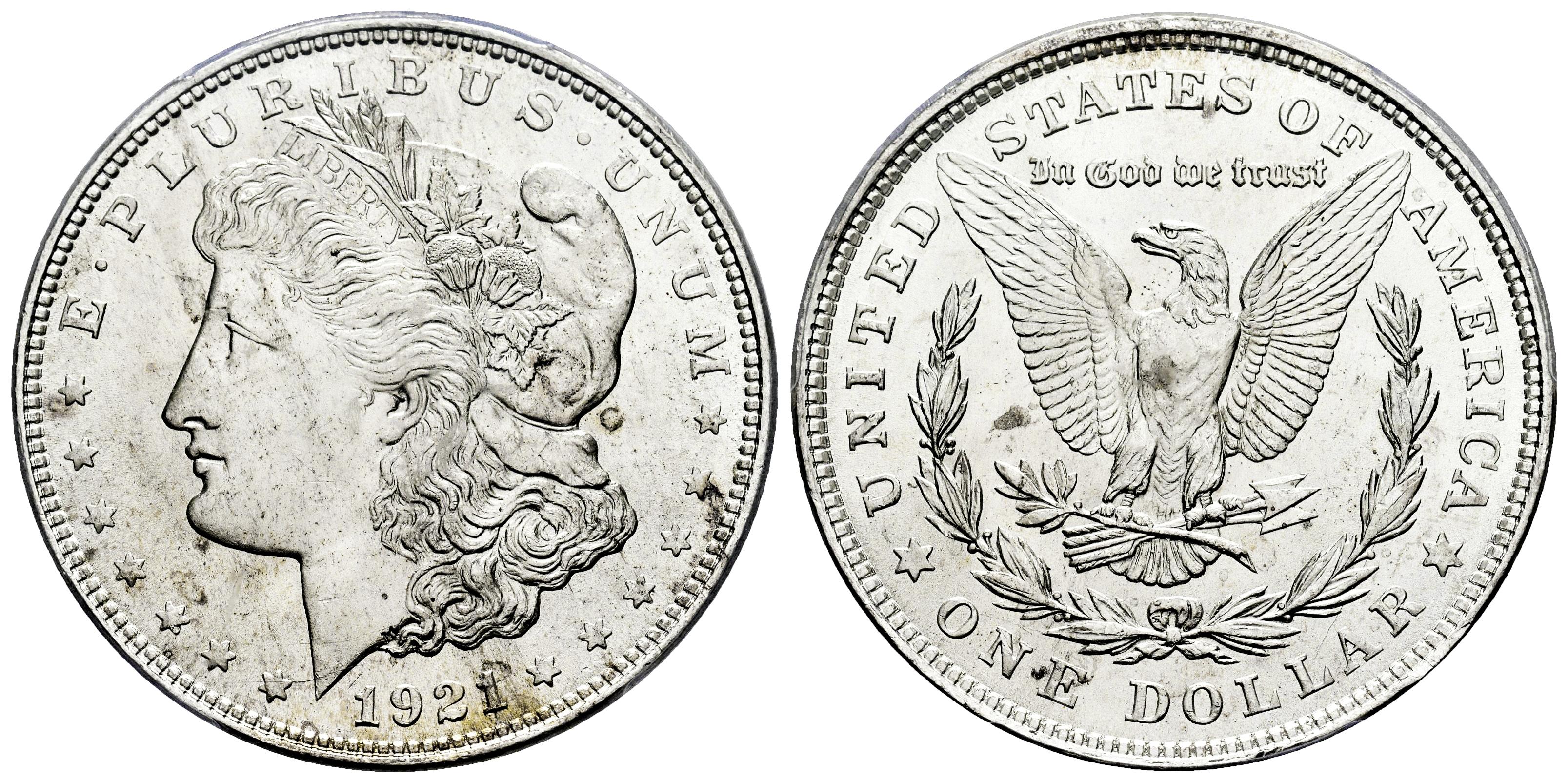 Estados Unidos. Morgan Dollars. 1 dollar. 1921. Philadelphia. (Km-110). Ag. Brillo original. Encapsulada por PCGS como MS 64. Est...120,00.