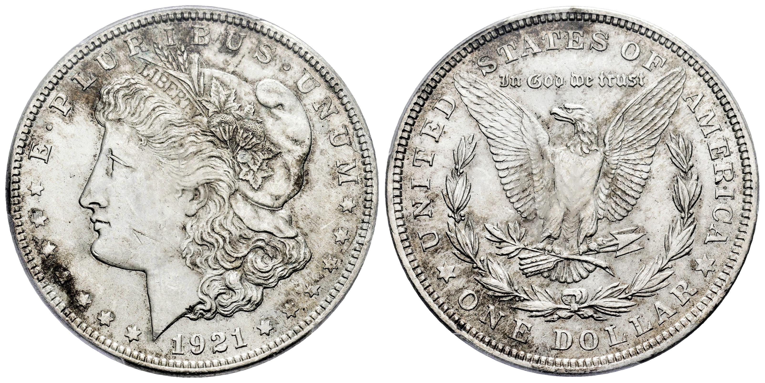Estados Unidos. Morgan Dollars. 1 dollar. 1921. Philadelphia. (Km-110). Ag. Manchas. Encapsulada por PCGS como MS 63. Est...70,00.