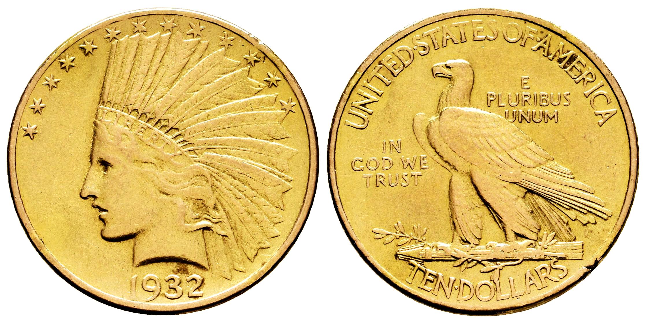 Estados Unidos. Indian Eagles. 10 dollars. 1932. Philadelphia. (Km-130 similar). (Fried-166 similar). Au. 16,34 g. Defecto en el canto. Reproducción de joyería de .700. EBC-. Est...1200,00.