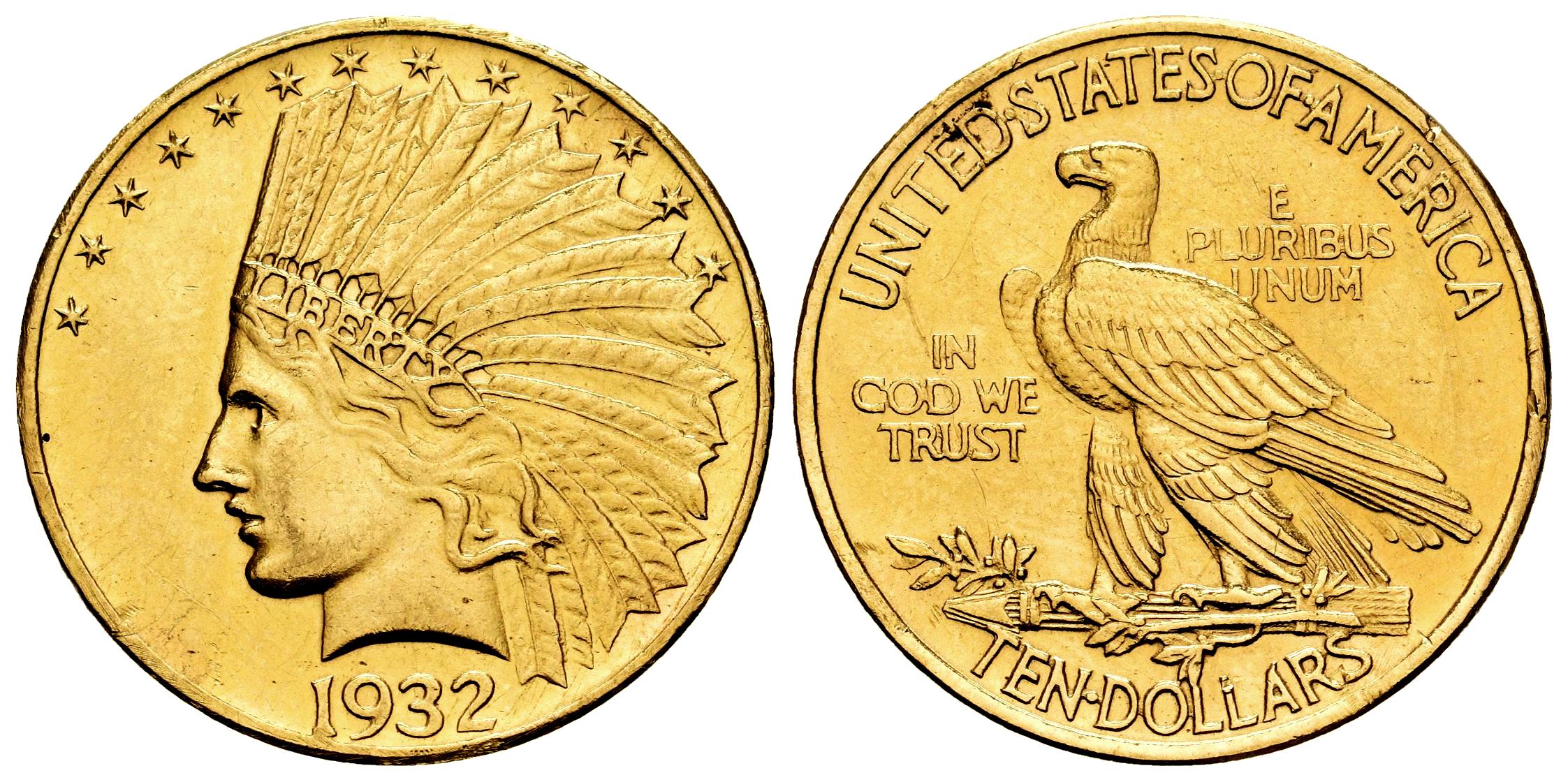 Estados Unidos. Indian Eagles. 10 dollars. 1932. Philadelphia. (Km-130 similar). (Fried-166 similar). Au. 16,64 g. Brillo original. Reproducción de joyería de .700. EBC+. Est...1200,00.