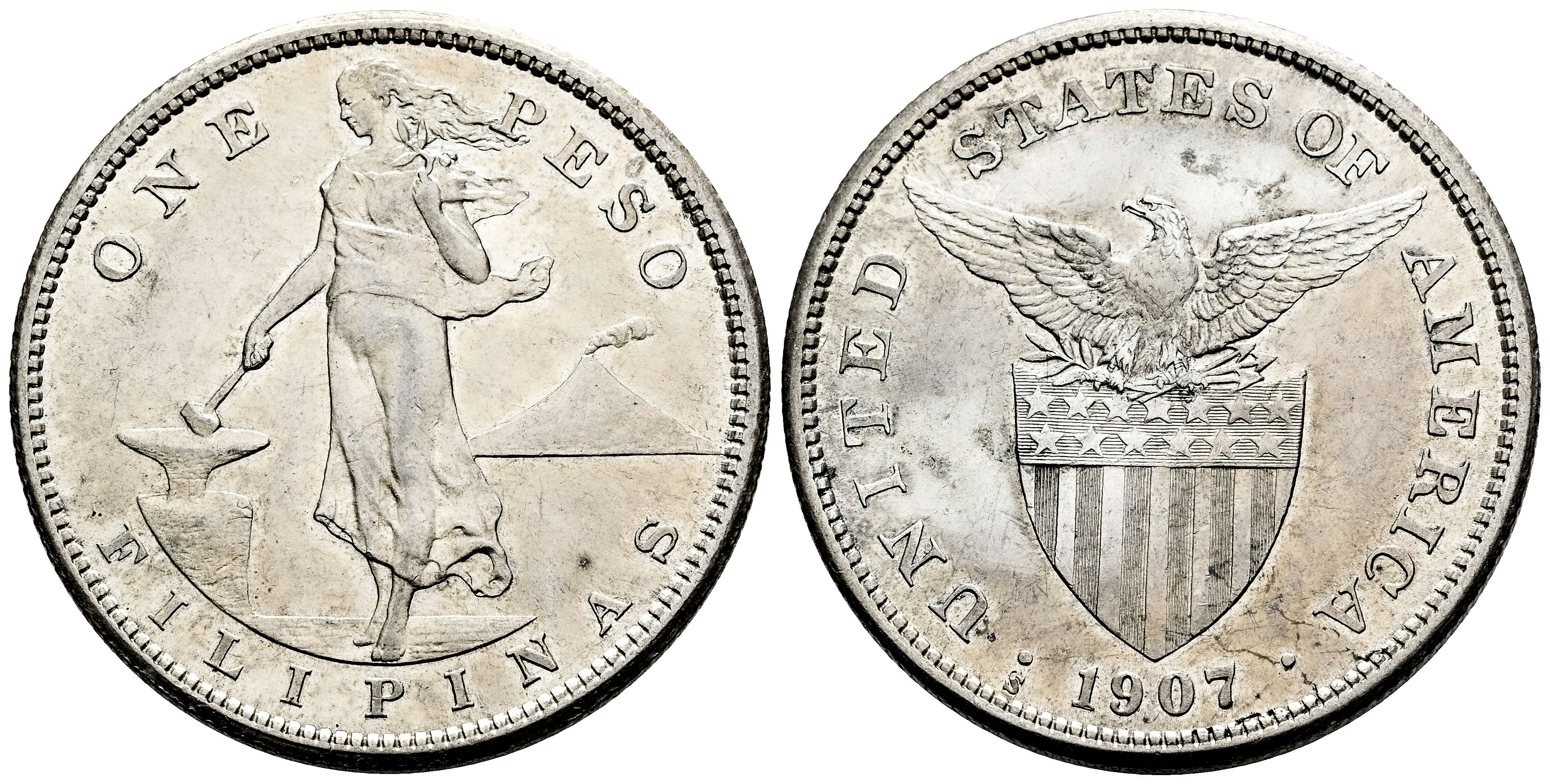 Filipinas. Administración Americana. 1 peso. 1907. San Francisco. S. (Km-172). Ag. 20,01 g. Brillo original. EBC. Est...120,00.