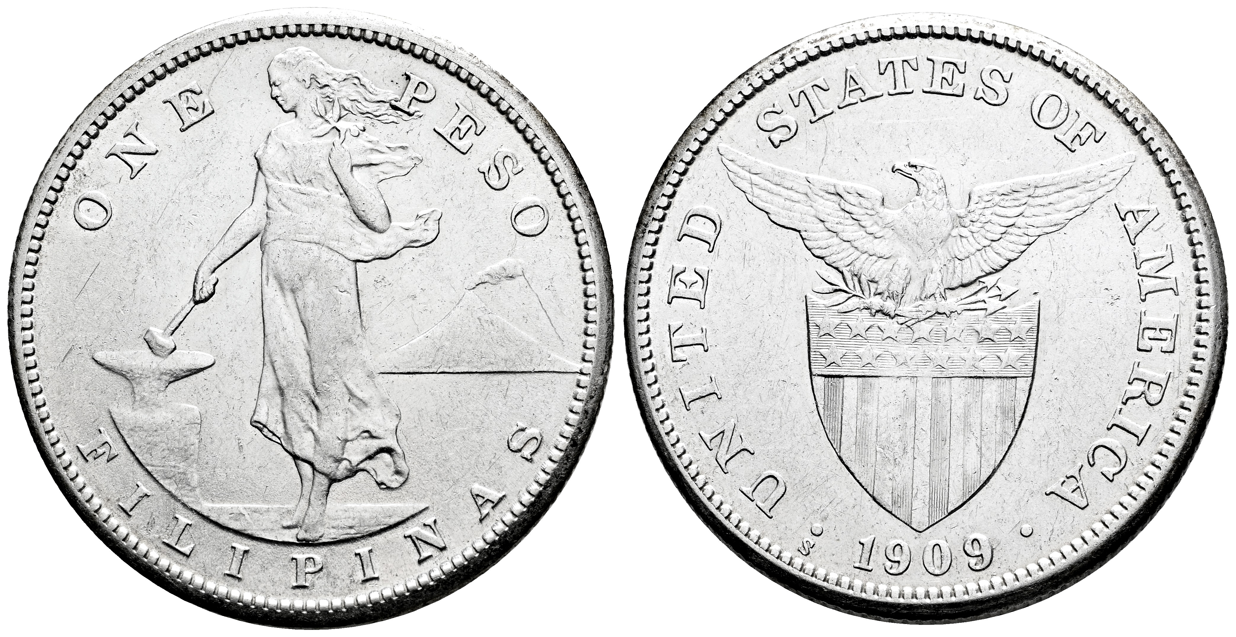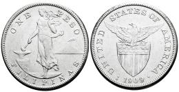 Filipinas. Administración Americana. 1 peso. 1909. San Francisco. S. (Km-172). Ag. 19,97 g. Leves rayitas. Brillo original. EBC. Est...80,00.