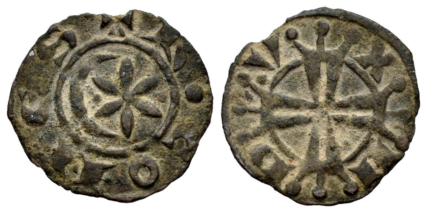 Francia. Raymond V, VI, VII. Denier. 1148-1222. Marquesado de Provenza. (Boudeau-785 (2f)). Anv.: + R • COMЄS. Rev.: D-V-X-M. Ve. 0,78 g. MBC. Est...50,00.