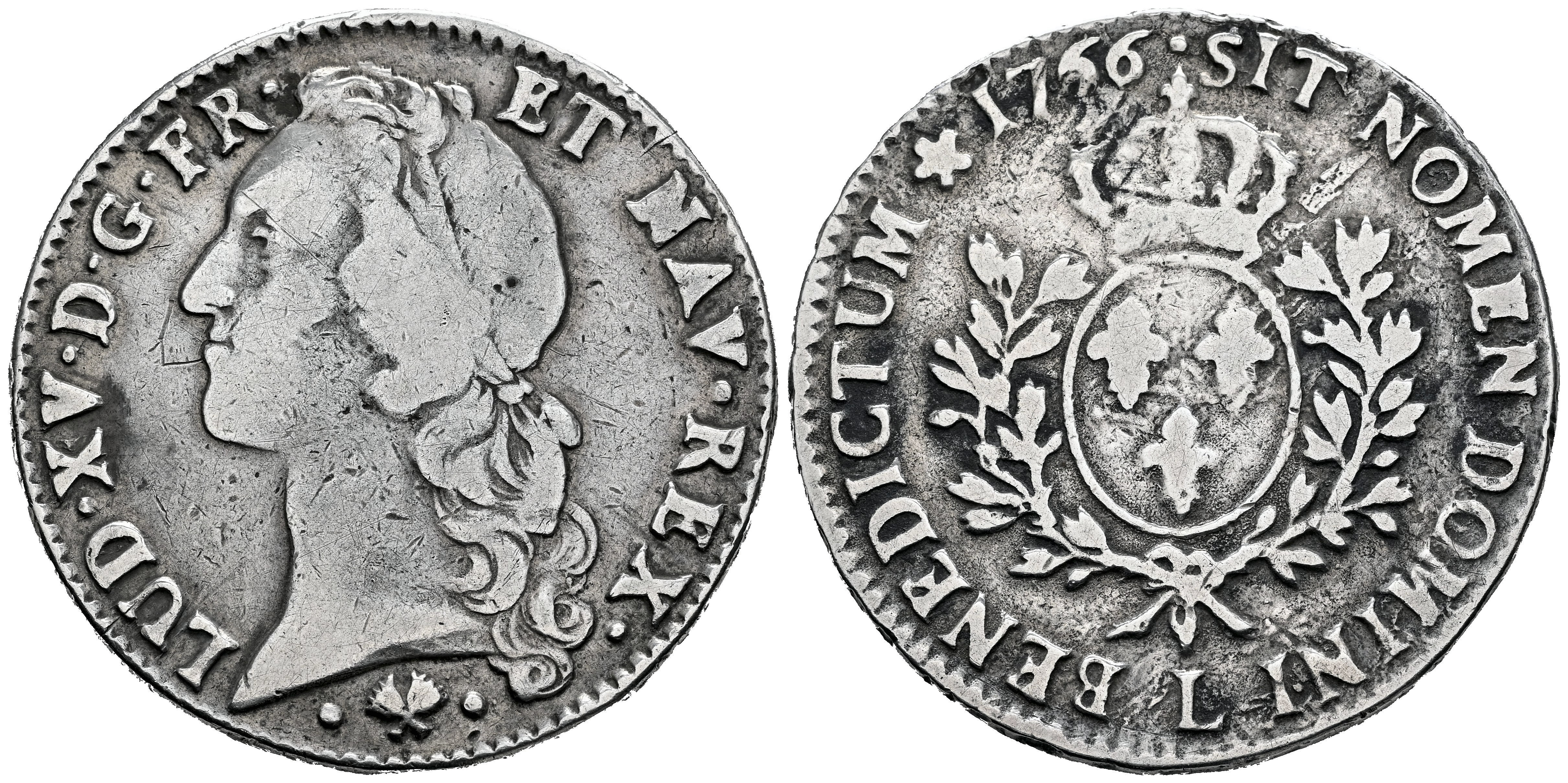 Francia. Louis XV (1715-1774). 1 Ecu. 1756. Bayona. L. (Km-512.12). (Gad-322). Ag. 26,62 g. Estuvo en aro. Limpiada. MBC-/MBC. Est...35,00.