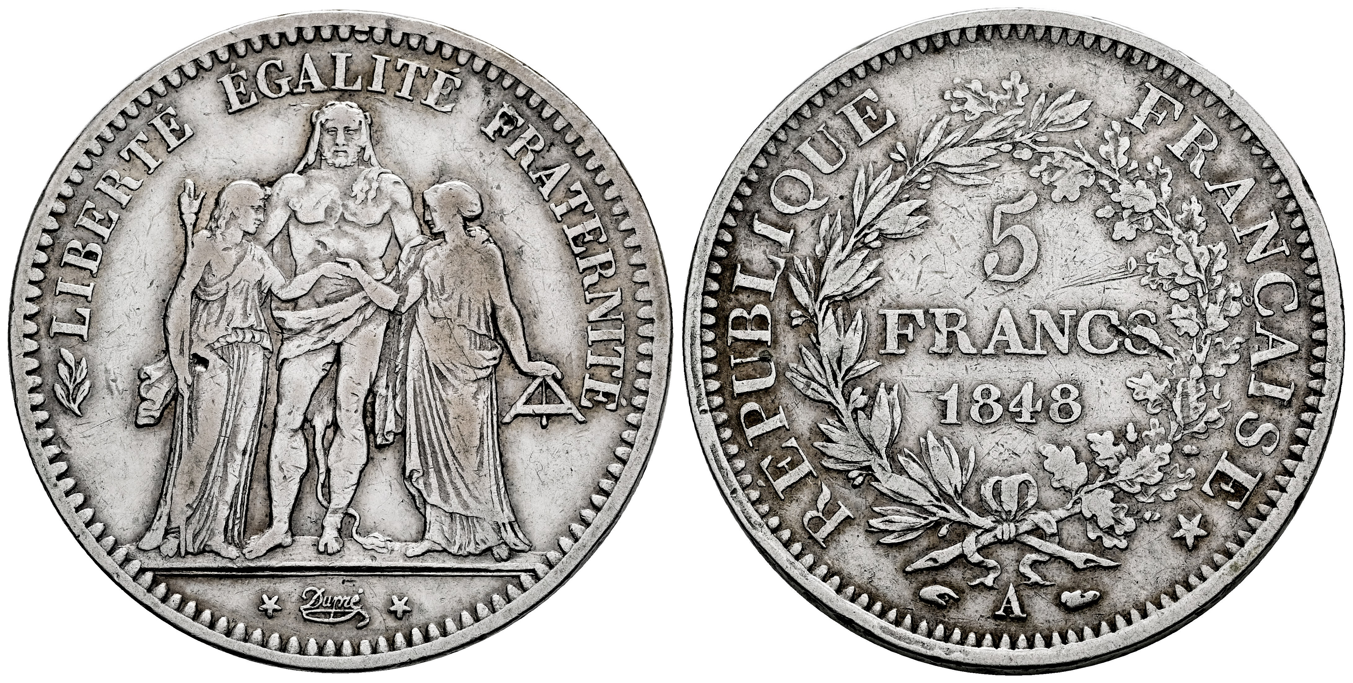 Francia. II República. 5 francs. 1848. París. A. (Km-756.1). (Gad-683). Ag. 24,71 g. MBC. Est...50,00.