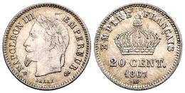 Francia. Napoleón III (1852-1870). 20 centimes. 1867. Estrasburgo. BB. (Km-808.2). Ag. 1,02 g. Restos de brillo original. Ligero tono. MBC+. Est...25,00.