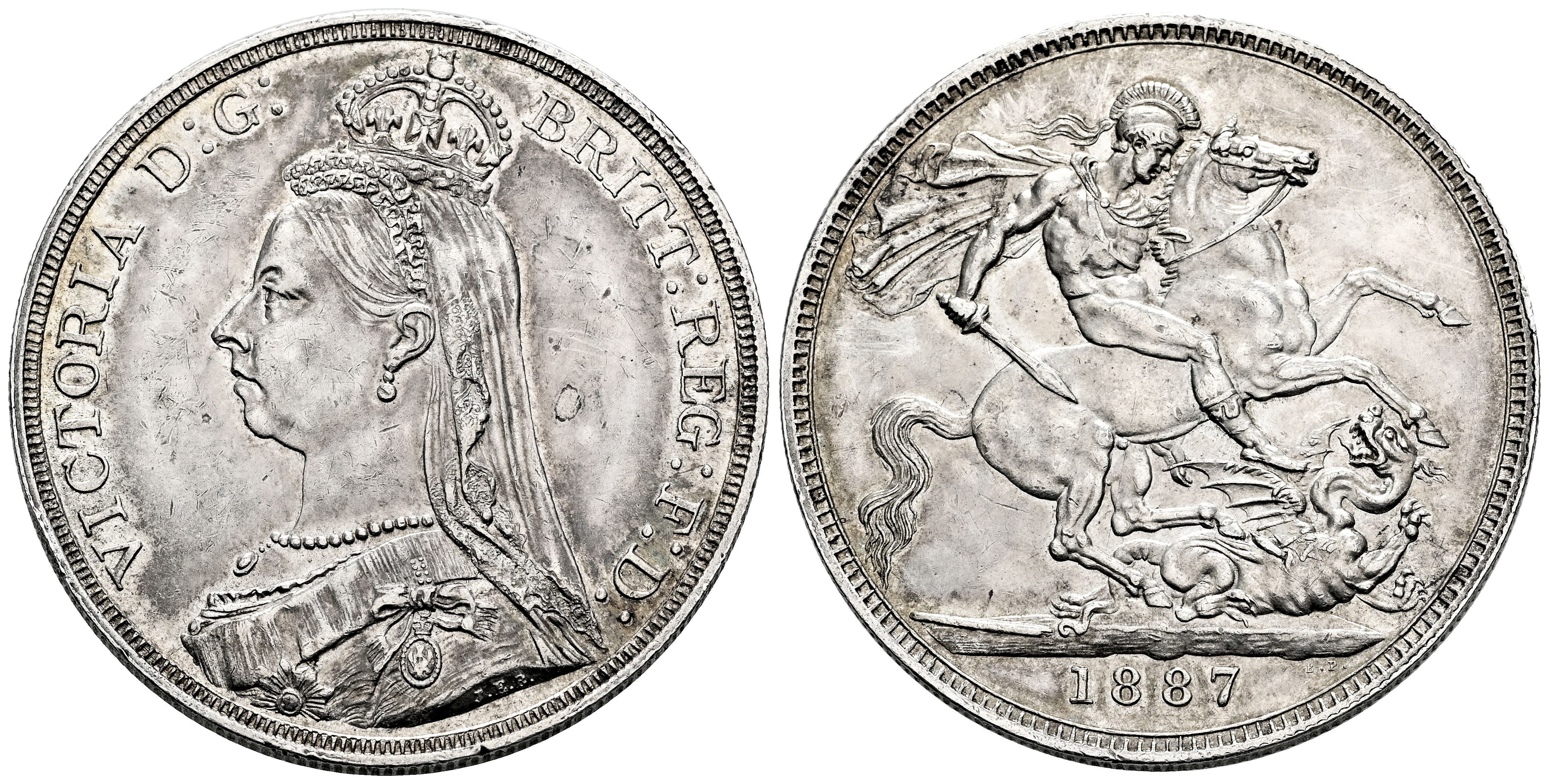 Gran Bretaña. Victoria. 1 crown. 1887. (Km-765). Ag. 28,35 g. Restos de brillo original. EBC. Est...200,00.