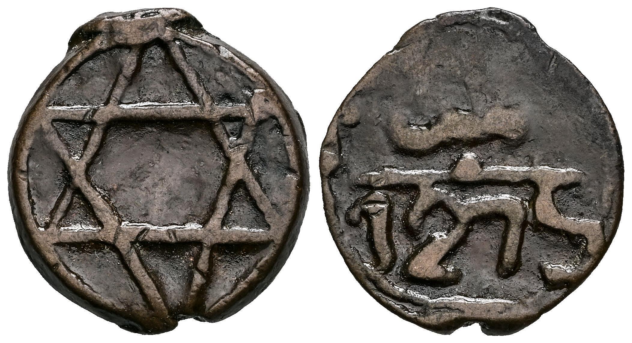 Marruecos. Moulay 'Abd al-Rahman. Fals. 1275. Sin ceca. (Km-C#122b.1 var.). Ae. 3,76 g. Variante por no tener punto en la estrella. Escasa. MBC+. Est...30,00.