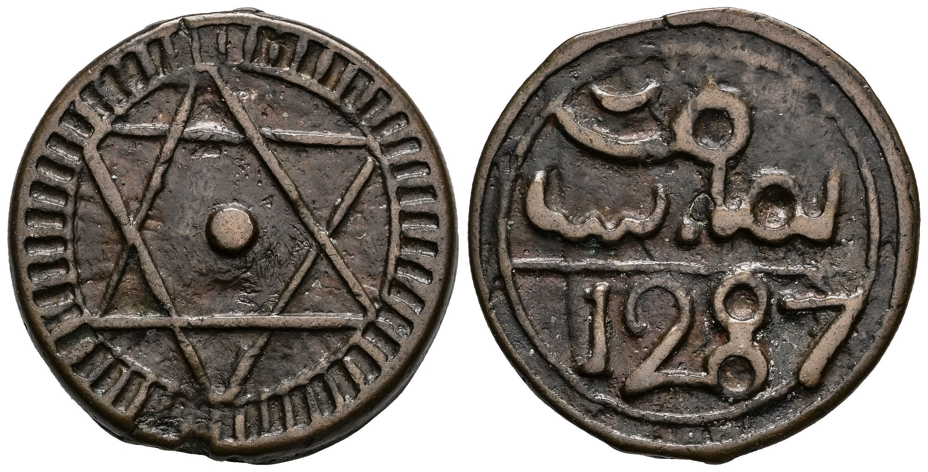 Marruecos. Sidi Muhammad IV (1276-1290 H). 4 felus. 1287 H. Fez. (Km-C#166.1). Ae. 10,39 g. EBC-. Est...30,00.