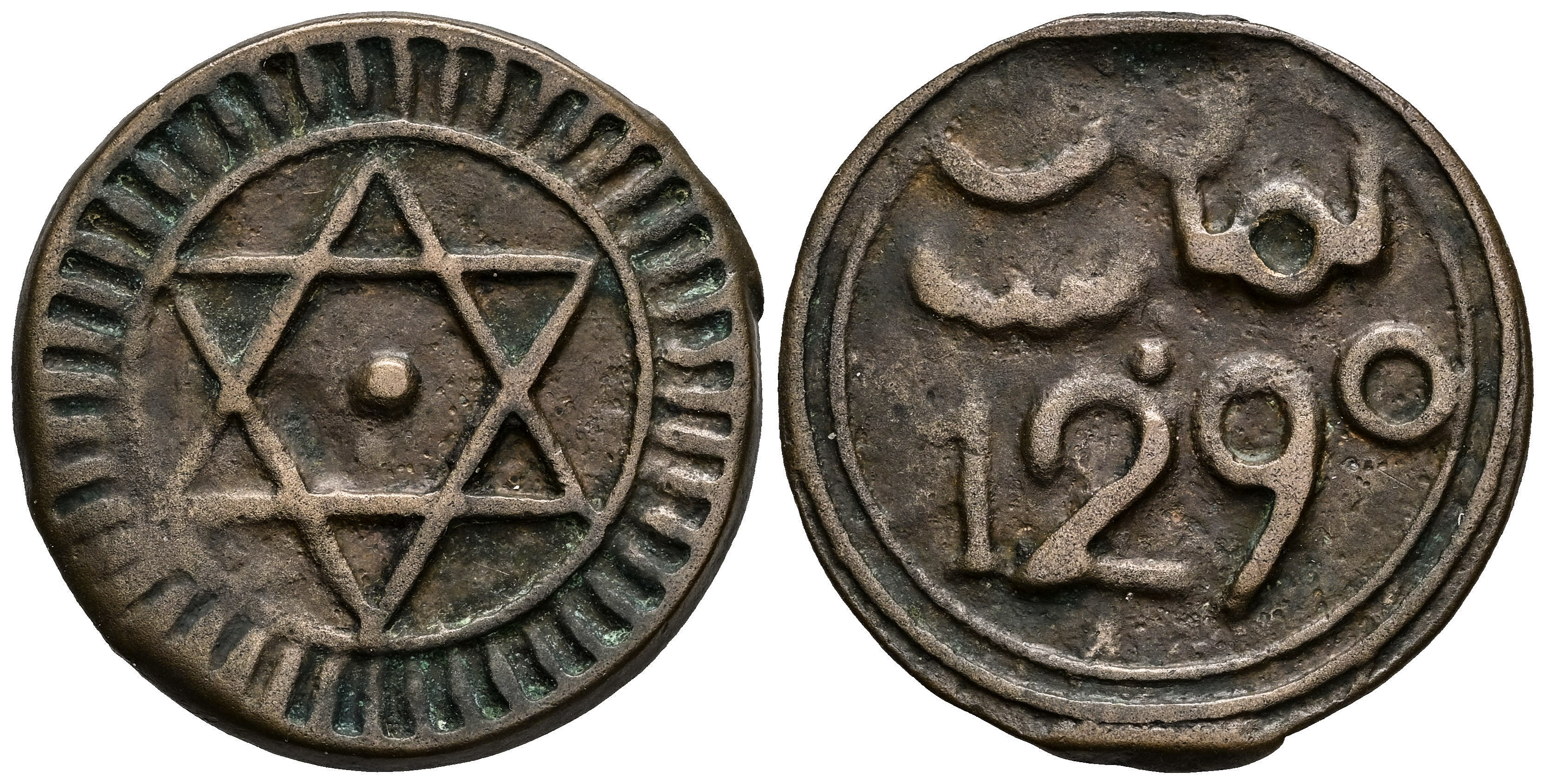 Marruecos. Sidi Muhammad IV (1276-1290 H). 4 falus. 1290 H. Fez. (Km-C#166.1). Ae. 8,88 g. MBC+. Est...30,00.