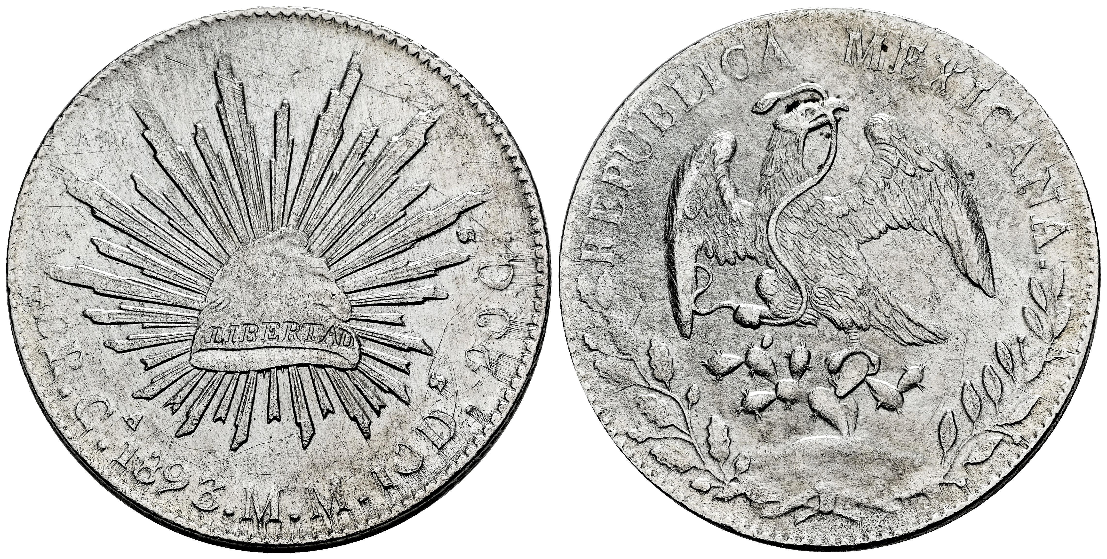 México. 8 reales. 1893. Chihuahua. MM. (Km-377.2). Ag. 26,66 g. Rayitas. Limpiada. MBC+. Est...70,00.