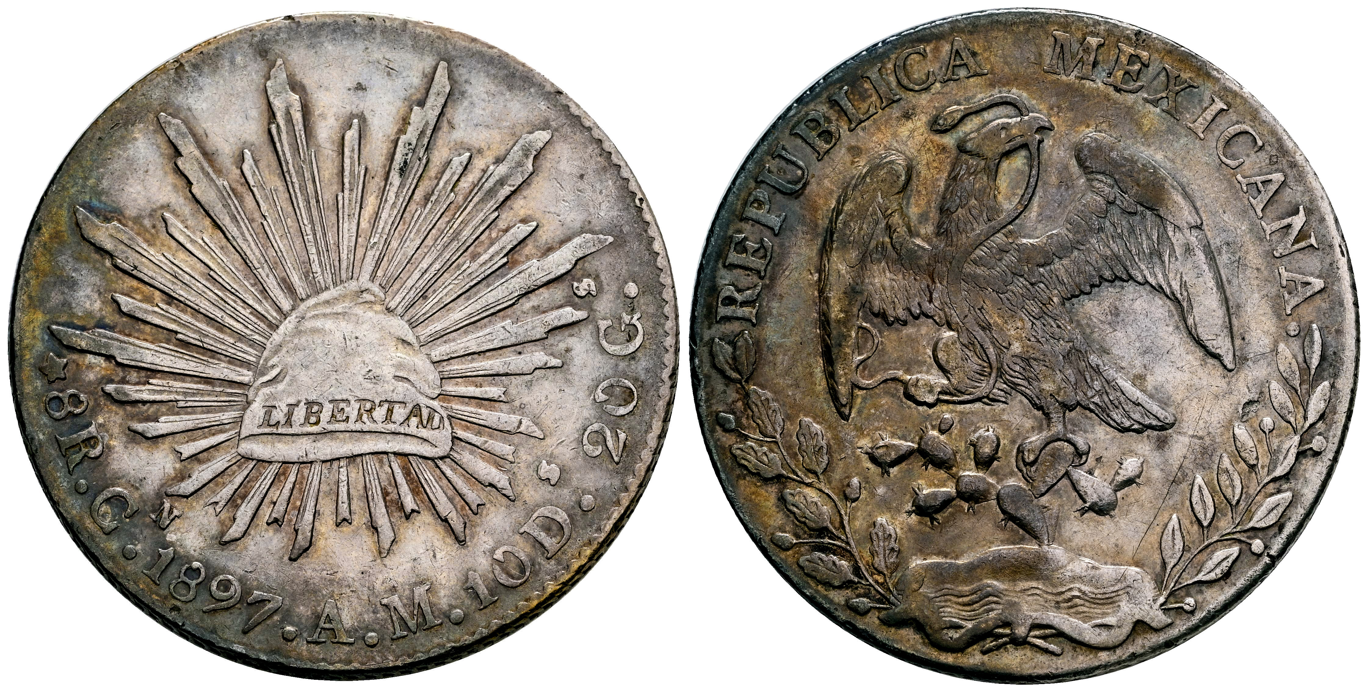 México. 8 reales. 1897. México. AM. (Km-377.10). Ag. 26,88 g. Suave tono. MBC+. Est...60,00.