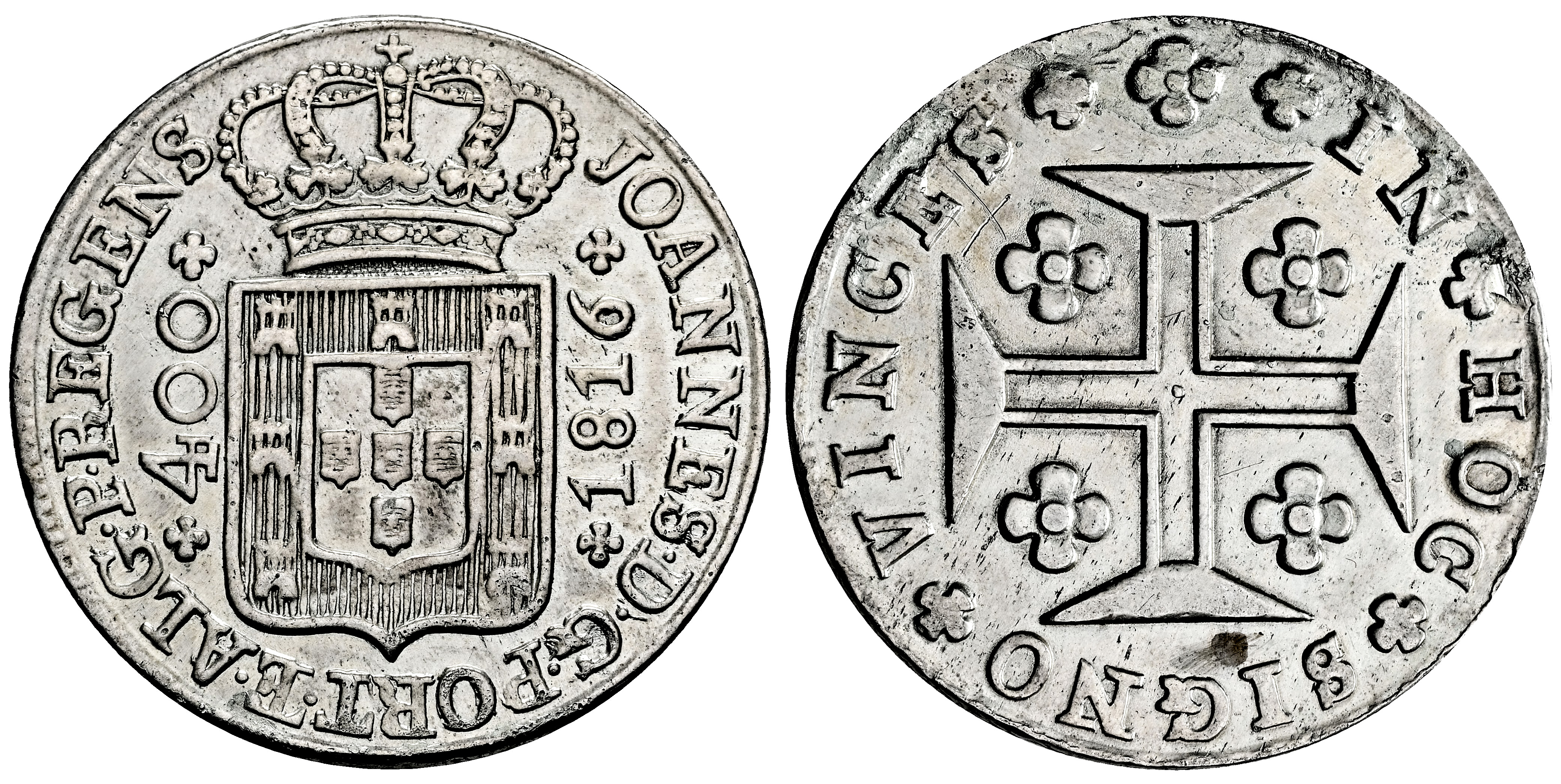 Portugal. D. Joao, Príncipe Regente (1799-1816). 400 reis. 1816. (Km-331). Ag. 14,23 g. Ligera oxidación en reverso. Limpiada. MBC+. Est...50,00.