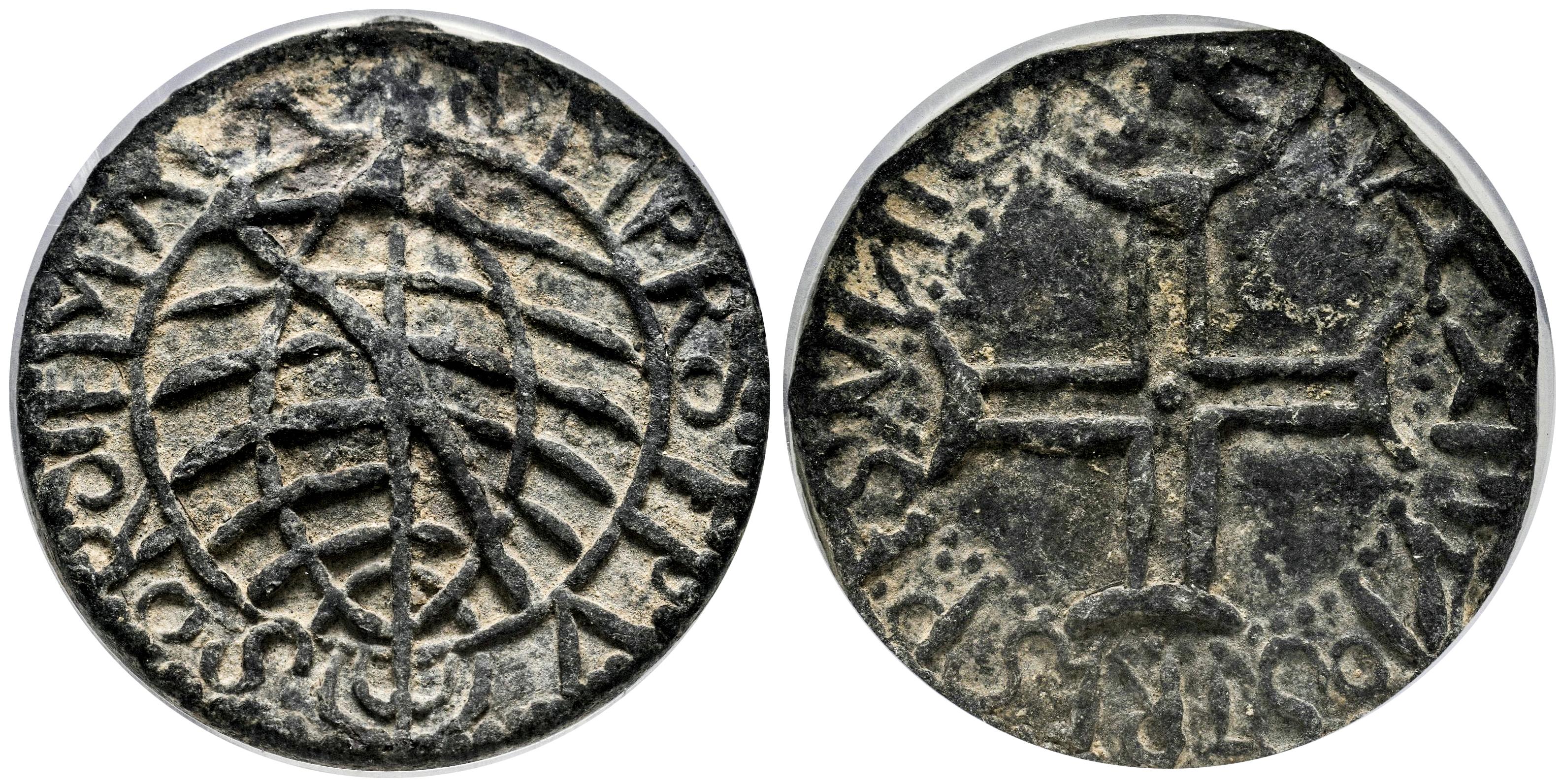 India Portuguesa. D. Manuel I (1495-1521). Bastardo. ND. Malaca. 2ª Emisión. (Gomes-20.01). Pb. Encapsulada por NGC como XF Details. Environmental damage. Est...400,00.
