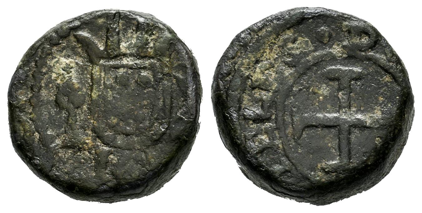 India Portuguesa. D. Felipe III de Portugal, IV de España (1621-1640). 1 bazaruco. ND. Diu. (Gomes-01.05). Ae. 7,21 g. BC+. Est...100,00.