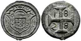 India Portuguesa. D. Pedro IV (1826-1828). 20 Bazarucos. 1828. Diu. D-O. (Gomes-06.02). Pb. 15,78 g. Buen ejemplar para este tipo. EBC-. Est...200,00.