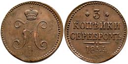 Rusia. Nicholas I (1825-1855). 3 kopeks. 1644. Ekaterinburg. (EM). (Km-C#146.1). (Bitkin-543). Ae. 30,59 g. MBC+. Est...50,00.