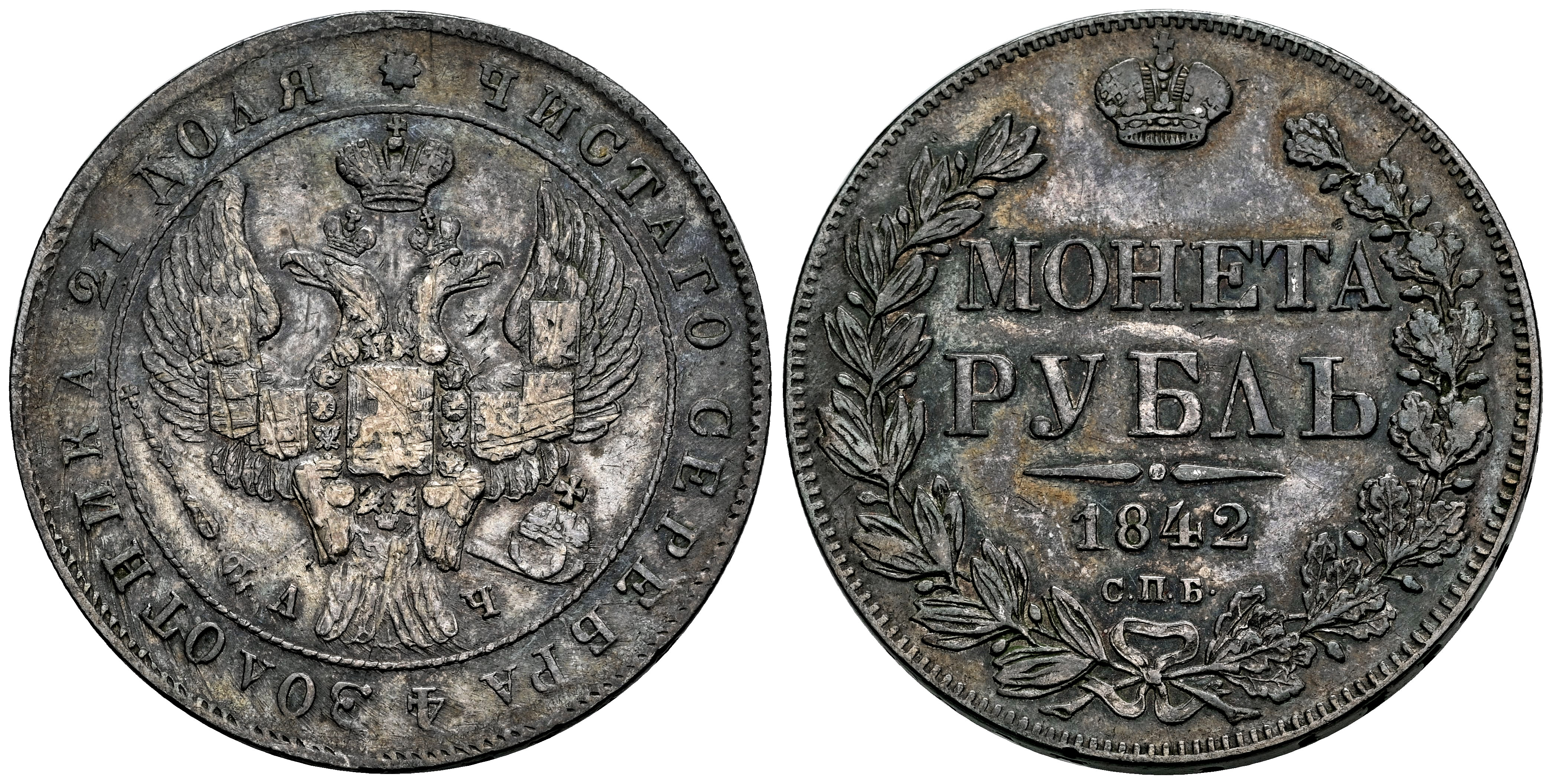 Rusia. Nicholas I (1825-1855). 1 rouble. 1842. San Petesburgo. СПБ / АЧ. (Km-C3#168.1). (Bitkin-184). Ag. 20,79 g. Leves arañazos. Bonita pátina. EBC-. Est...150,00.