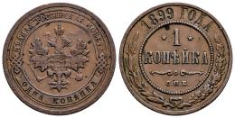 Rusia. Nicholas II (1894-1917). 1 kopek. 1899. San Petesburgo. СПБ. (Km-Y#9.2). (Bitkin-304). Ae. 3,11 g. MBC+. Est...30,00.