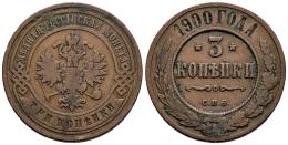 Rusia. Nicholas II (1894-1917). 3 kopeks. 1900. San Petesburgo. СПБ. (Km-Y#11.2). (Bitkin-299). Ae. 9,87 g. MBC-. Est...25,00.
